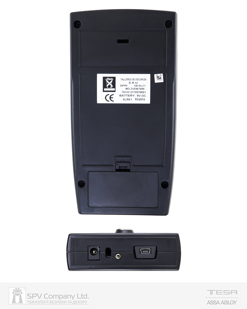 - Відмикання: Аварійне відмикання замка, настінного зчитувача або сейфу у випадку, коли розряджені елементи живлення замка.