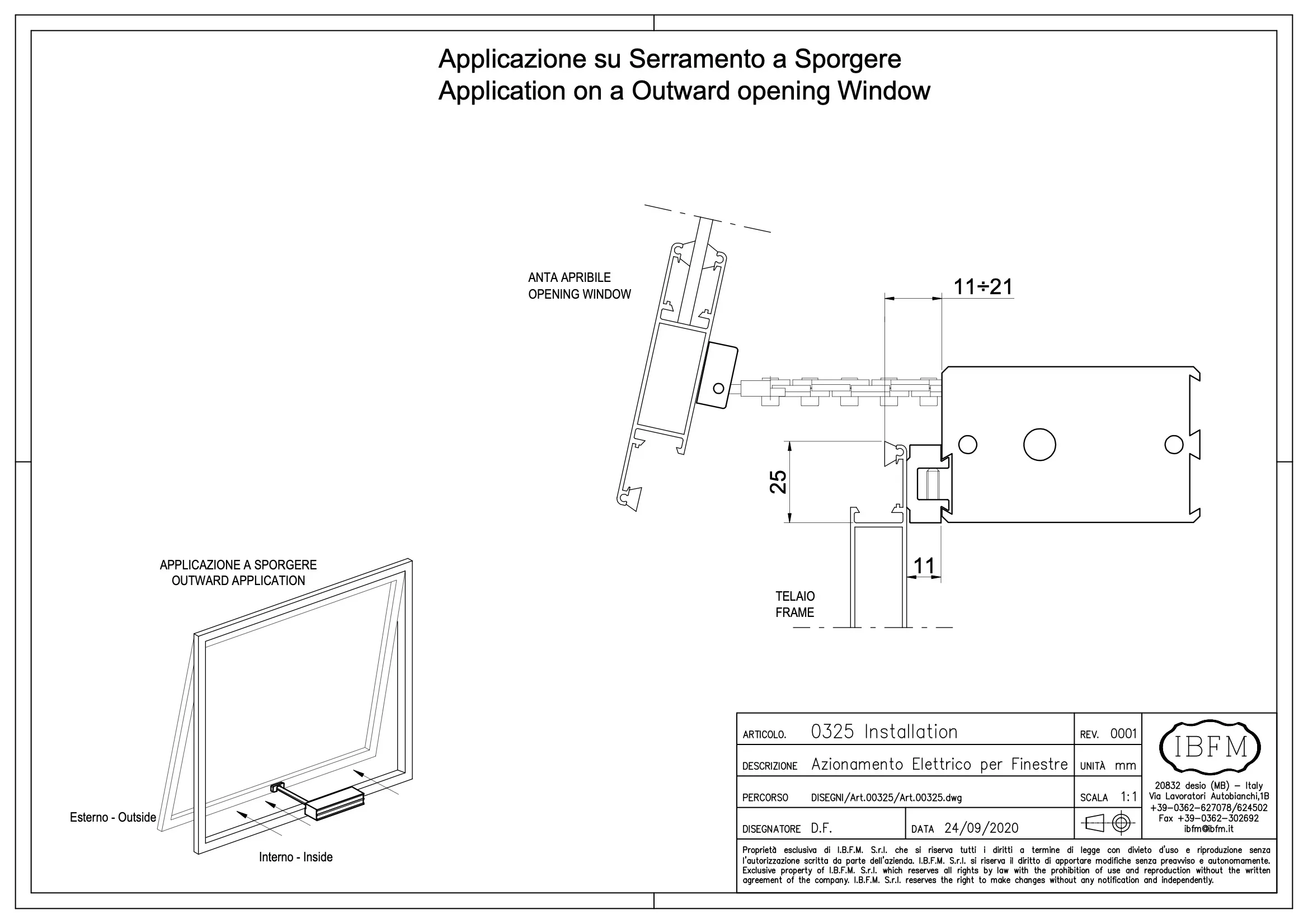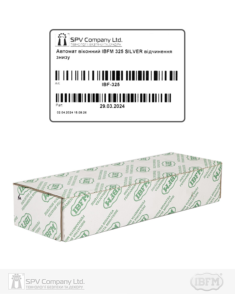 Автомат віконний IBFM 325 призначений для застосування на вікнах з функцією провітрювання (петлі зверху, відчинення на зовні).