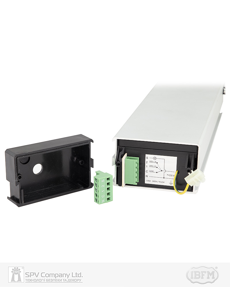 Підключається через звичайний двопозиційний перемикач (один вхід, два виходи). Перемикач в комплект не входить. Також можливе підключення через розумне реле охоронної системи або розумного будинку. Має також додатковий вихід (змінна напруга 220В, подача напруги в закритому положенні вікна) для керування сторонніми пристроями (наприклад, витяжка тощо) або індикації стану вікна.