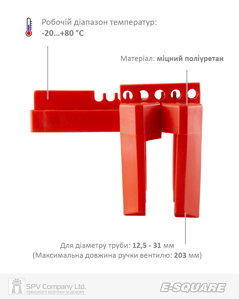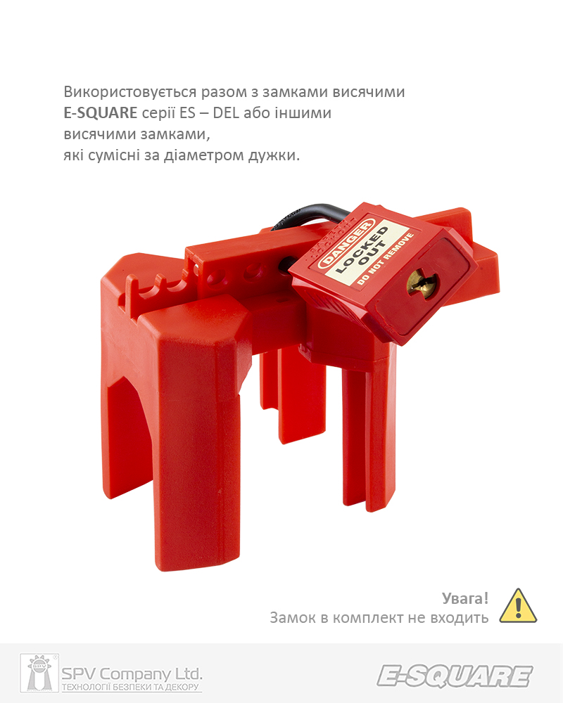 Накладний блокіратор – універсальний та зручний пристрій для блокування кульових вентилів. Може бути встановлений на більшість наявних у світі кульових вентилів. Виготовлений з діелектричного матеріалу, стійкий до механічних пошкоджень. Використається разом з замками висячими E-SQUARE серії ES – DEL або іншими висячими замками, які сумісні за діаметром дужки. Можливе блокування вентилю у зачиненому або відчиненому положенні.