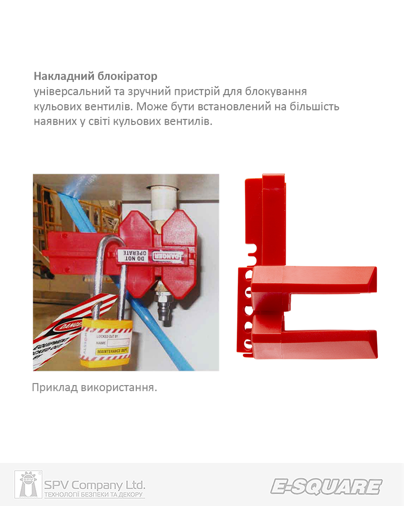 Продукція LOTO (Lockout Tagout - Система попереджувального блокування та маркування) від одного з світових лідерів з розробки та виробництва продукції LOTO – компанії E-Square (Індія) – призначена для підвищення рівня безпеки праці на виробництві шляхом повного відключення та блокування від увімкнення виробничого обладнання на час проведення технічного обслуговування або ремонту. Практично повністю виключає ризики нещасних випадків або загибелі працівників під час виконання таких робіт.