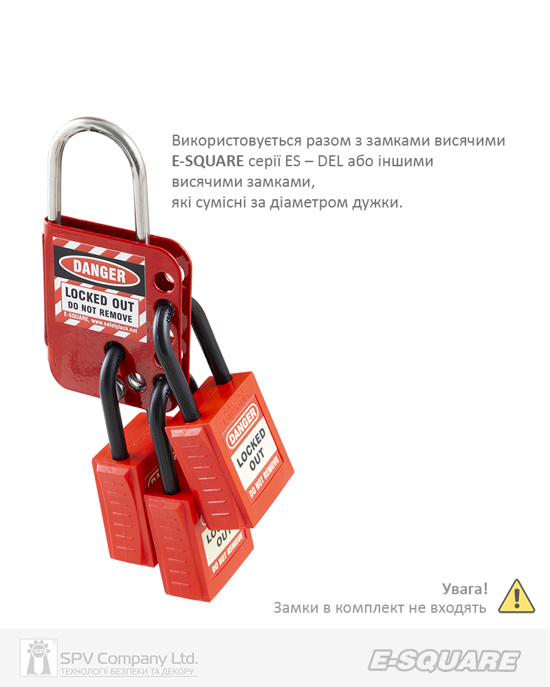 Замкові множники використаються разом з різними блокіраторами, коли необхідно заблокувати джерело небезпечної енергії кількома співробітниками. Для блокування використаються кілька висячих замків E-SQUARE серії ES – DEL або іншими висячими замками, які сумісні за діаметром дужки.