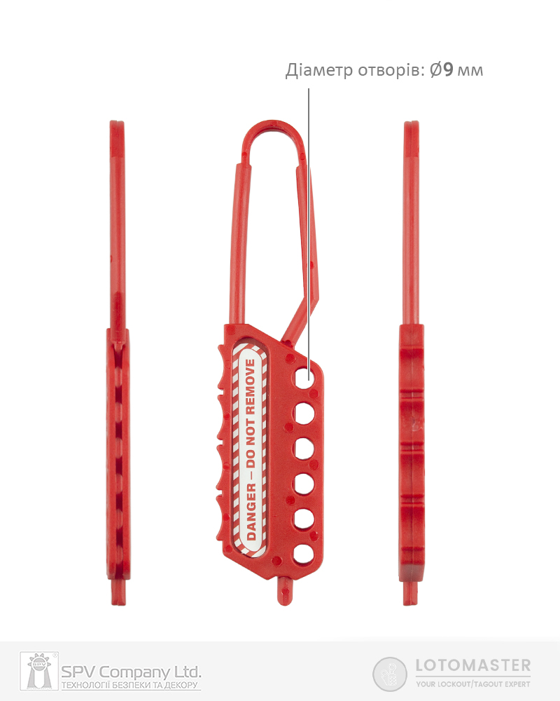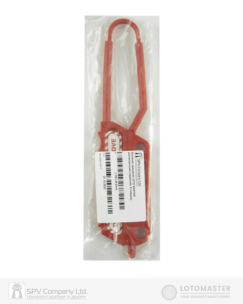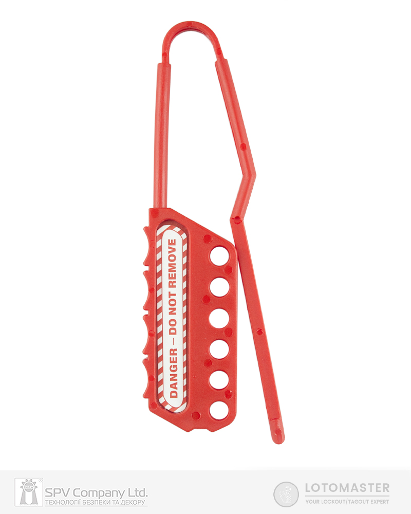 Замковий множник LOTO MASTER DH-6 діелектричний 6 отворів, червоний застосовується для групового блокування та дозволяє використати кілька навісних замків під час вимкнення одного джерела енергії.