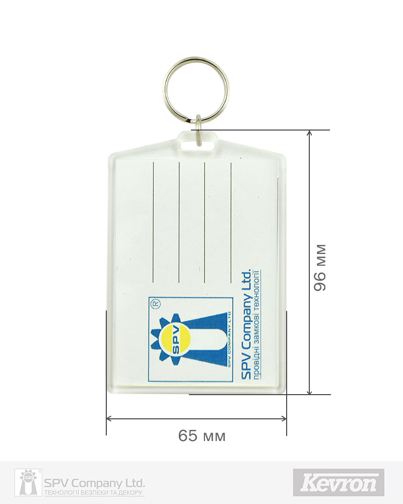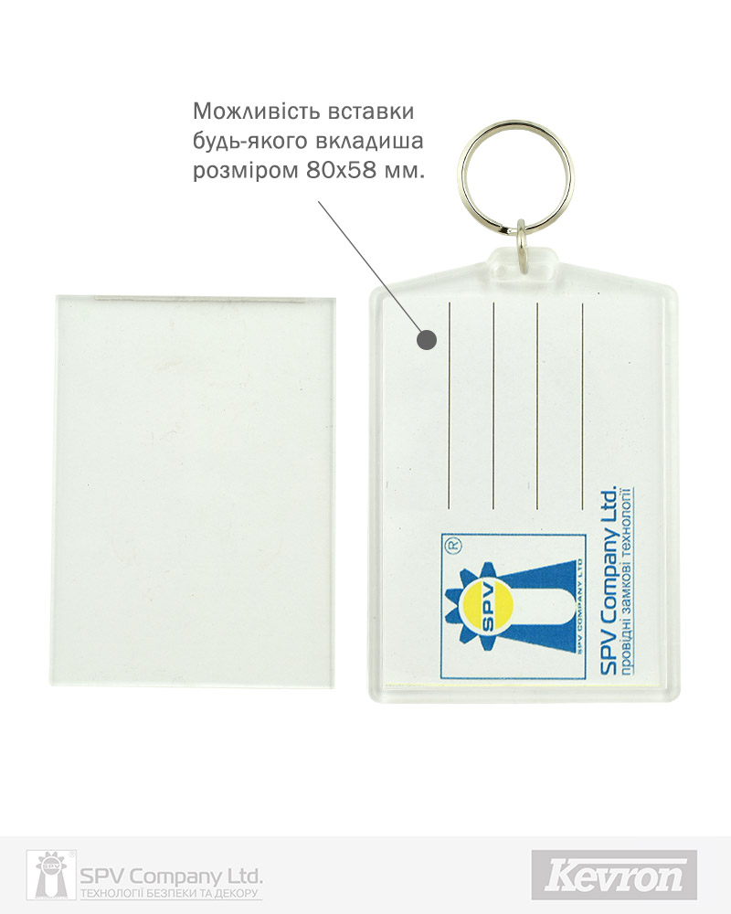 Брелоки Kevron вироблені з високоякісного пластику та надають можливість персоніфікації за допомогою паперової вставки з будь-якою надрукованою інформацією.