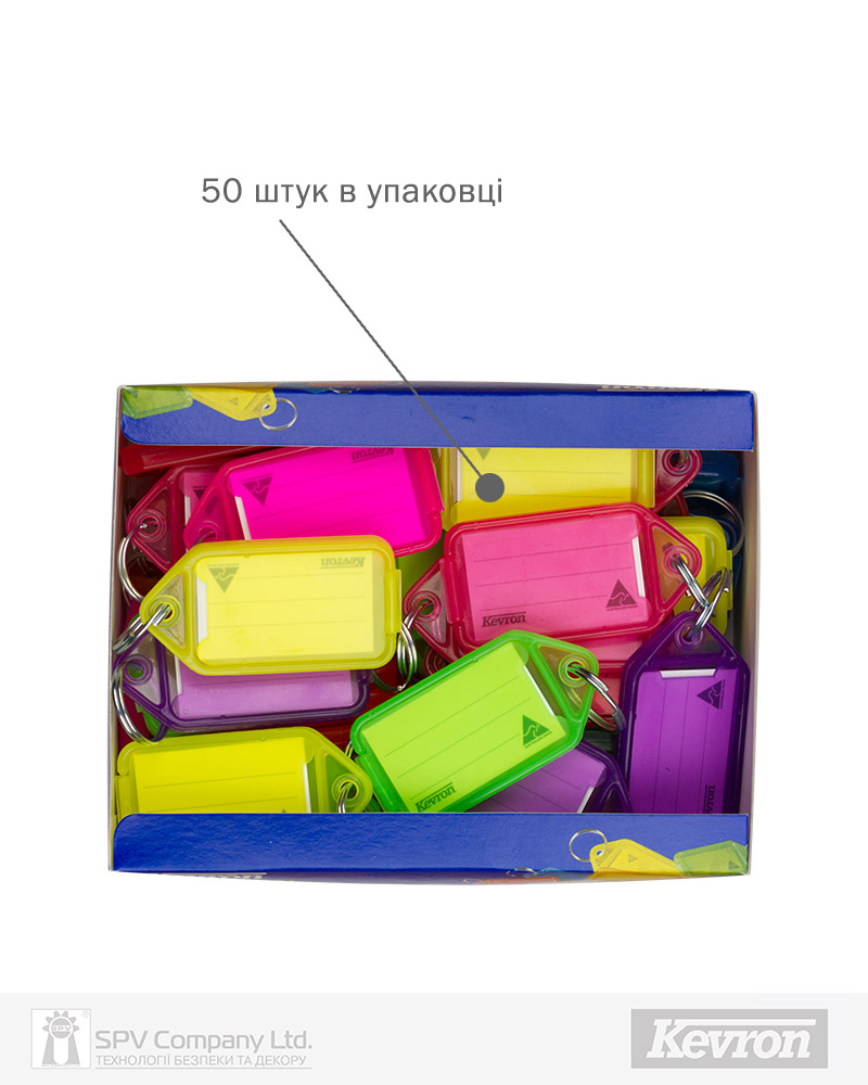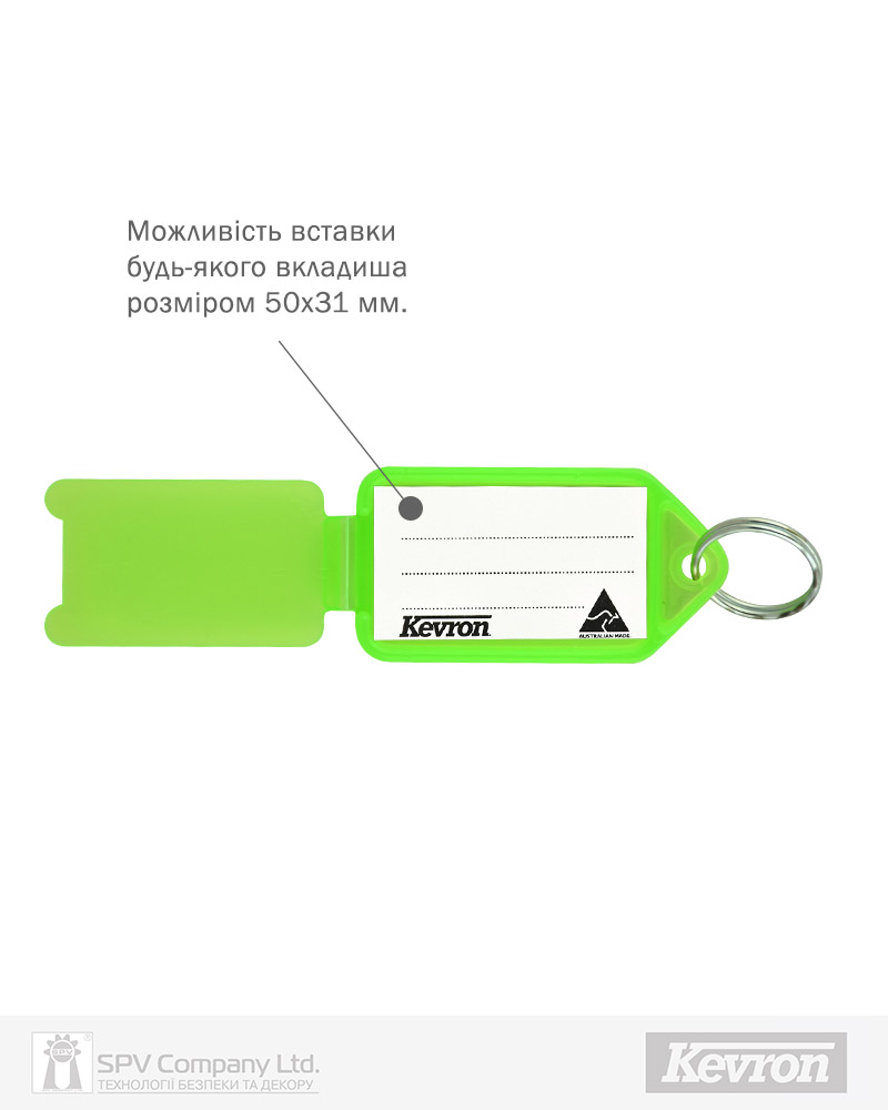 Брелоки Kevron вироблені з високоякісного пластику та надають можливість персоніфікації з допомогою паперової вставки з будь-якою надрукованою інформацією.