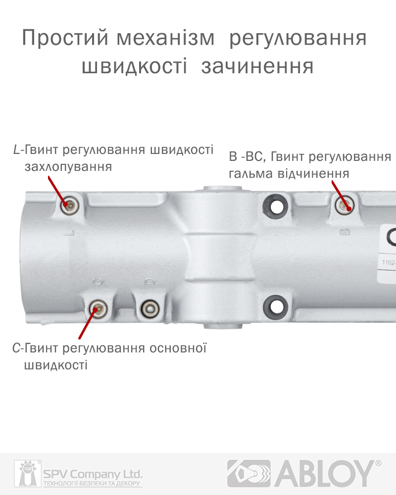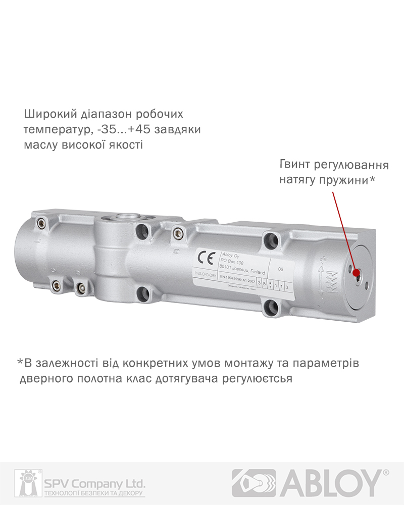 Дотягувач дверей ABLOY®, модель DC335 (Фінляндія) накладного типу – призначений для керування зовнішніми та внутрішніми дверима.
