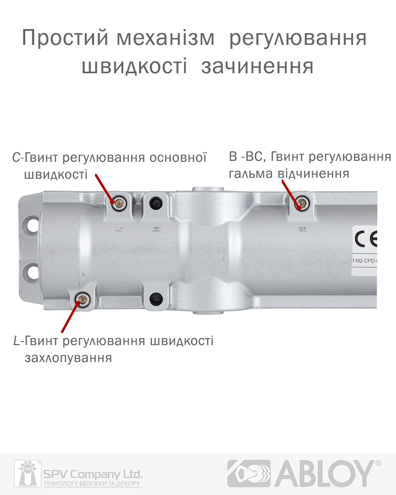 Дотягувач дверей ABLOY®, модель DC247 (Фінляндія) накладного типу – призначений для керування великогабаритними дверима.
