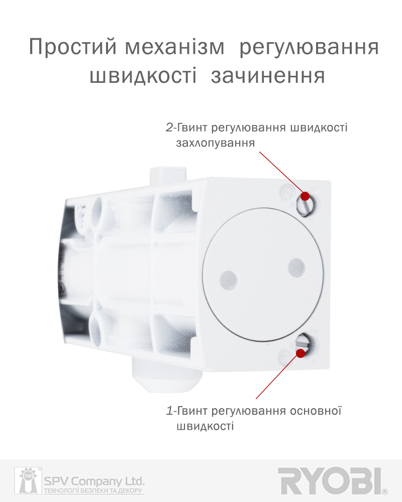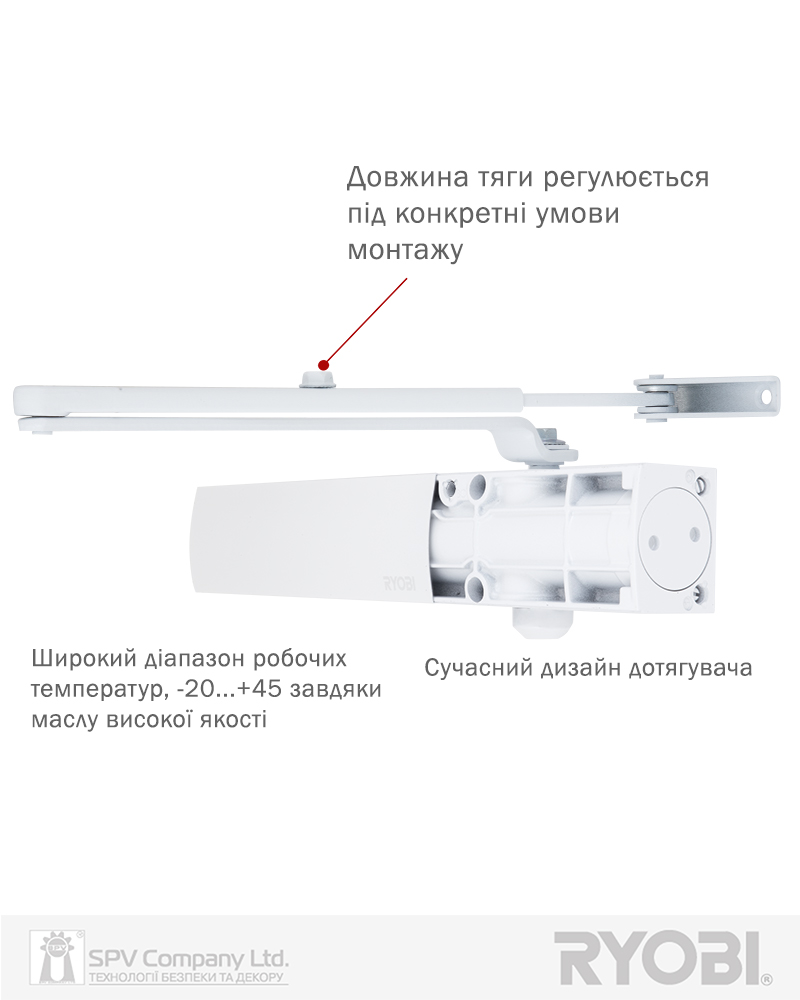 Дотягувач дверей RYOBI® серії 1200 модель D-1200 STD (Японія) накладного типу зі стандартною тягою – призначений для керування зовнішніми та внутрішніми дверима.