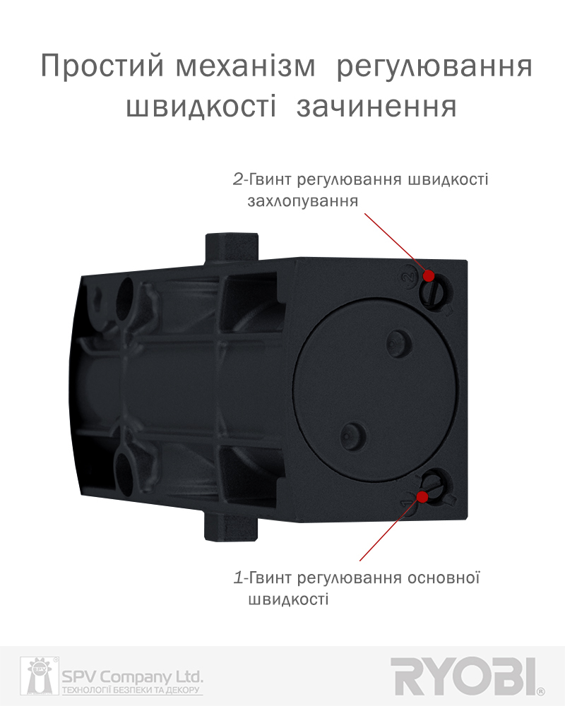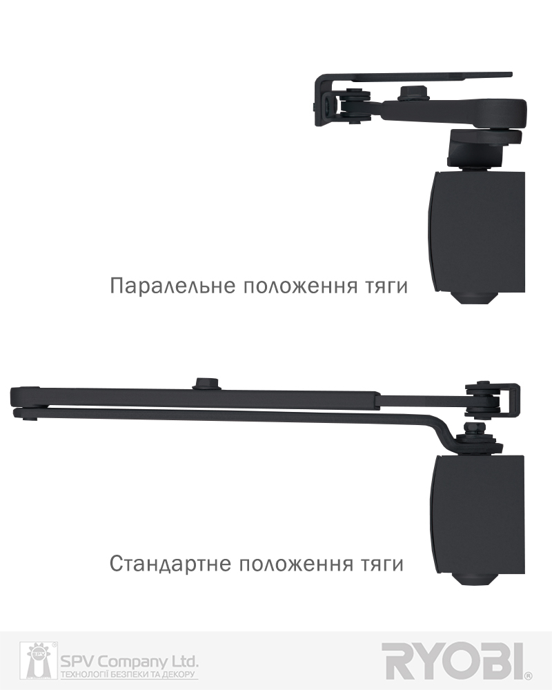 Дотягувач дверей RYOBI® серії 1200 модель D-1200 UNIV (Японія) накладного типу – призначений для керування зовнішніми та внутрішніми дверима.