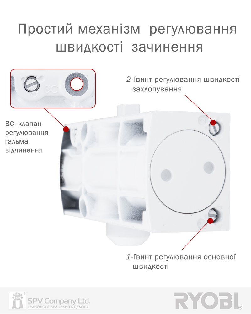 Дотягувач дверей RYOBI® серії 1200 модель D-1200 UNIV (Японія) накладного типу – призначений для керування зовнішніми та внутрішніми дверима.