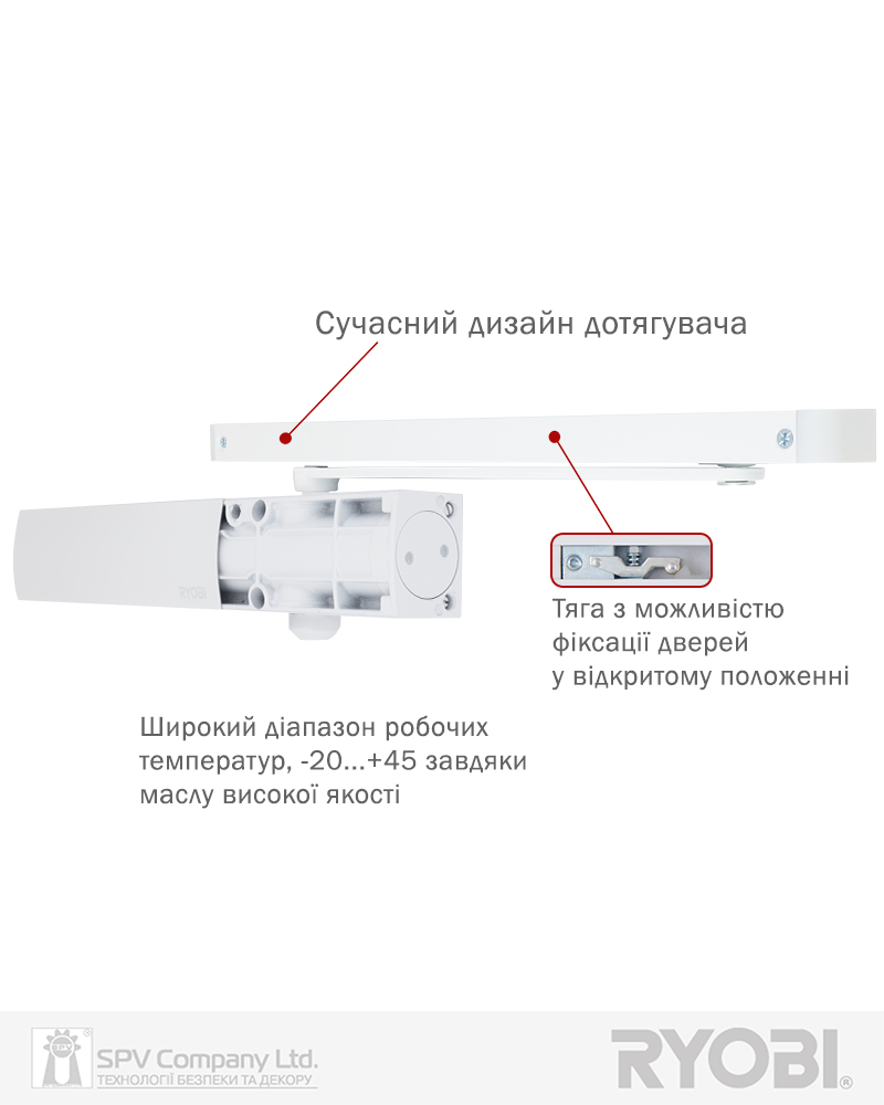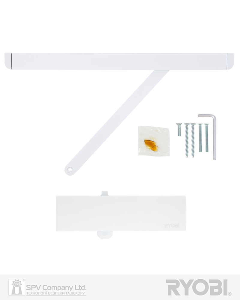 Дотягувач дверей RYOBI® серії 1200 модель D-1200T (Японія) накладного типу з ковзною тягою – призначений для керування внутрішніми та легкими зовнішніми дверима.