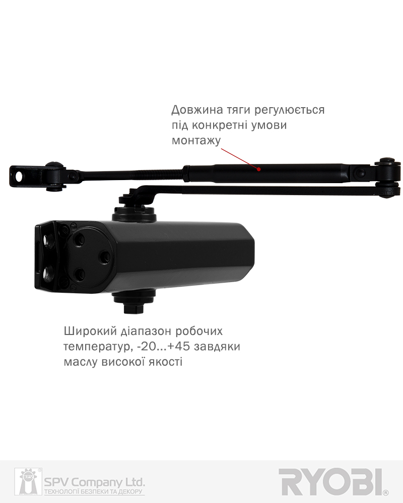 Дотягувач дверей RYOBI® серії 1500 модель D-1554 STD (Японія) накладного типу – призначений для керування зовнішніми та внутрішніми дверима.