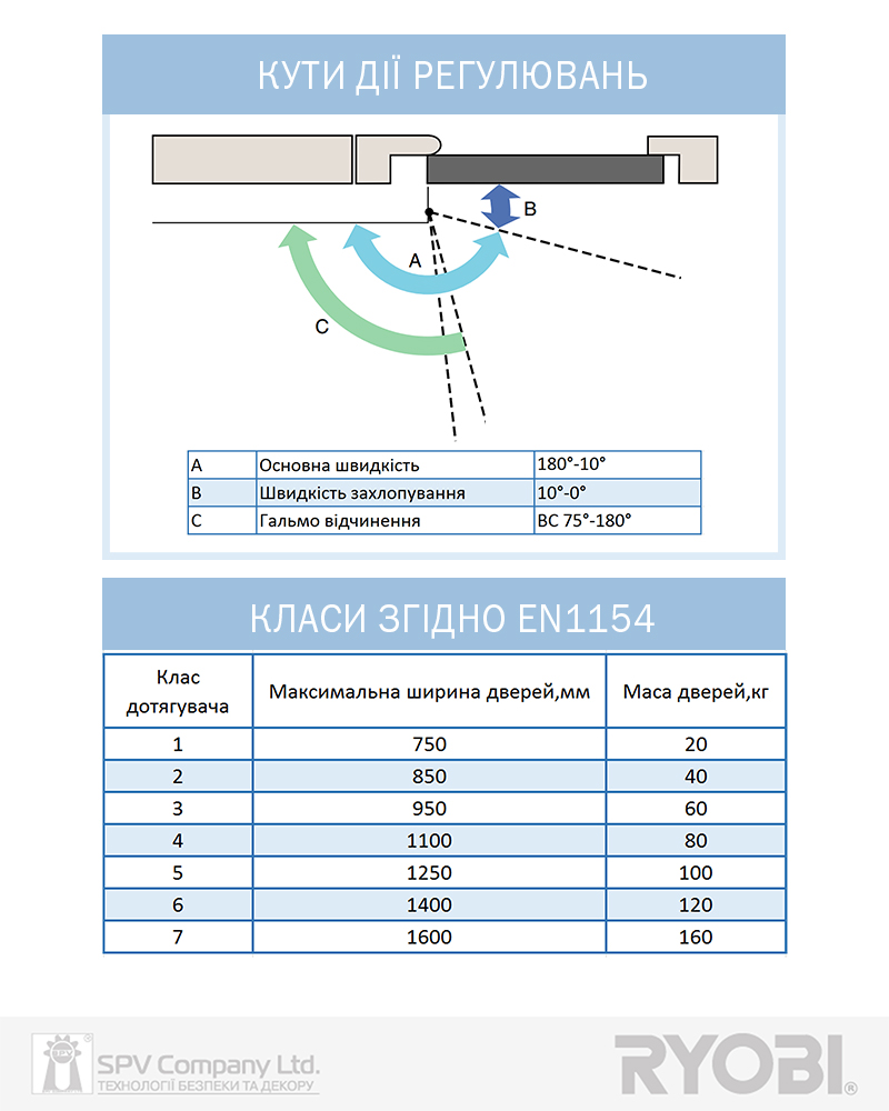Дотягувач дверей RYOBI® серії 1500 модель D-1554 STD (Японія) накладного типу – призначений для керування зовнішніми та внутрішніми дверима.