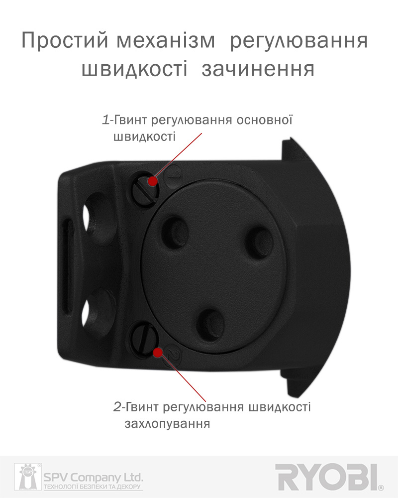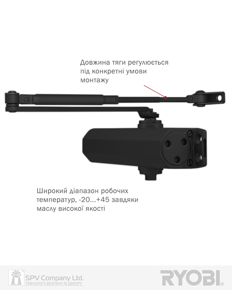 Дотягувач дверей RYOBI® серії 2000 модель D-2005 STD (Японія) накладного типу – призначений для керування зовнішніми та внутрішніми дверима.