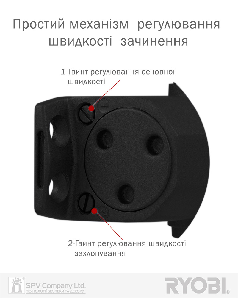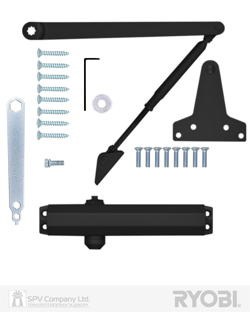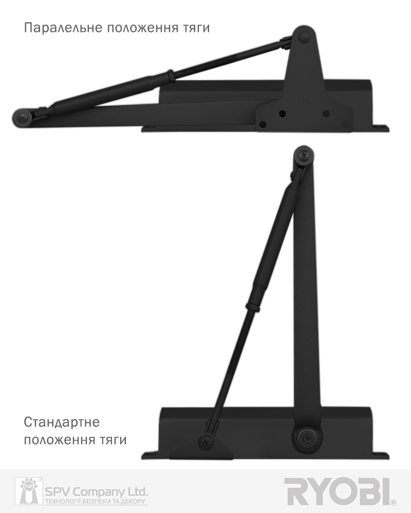 Дотягувач дверей RYOBI® серії 2000 модель D-2005 UNIV (Японія) накладного типу – призначений для керування зовнішніми та внутрішніми дверима.