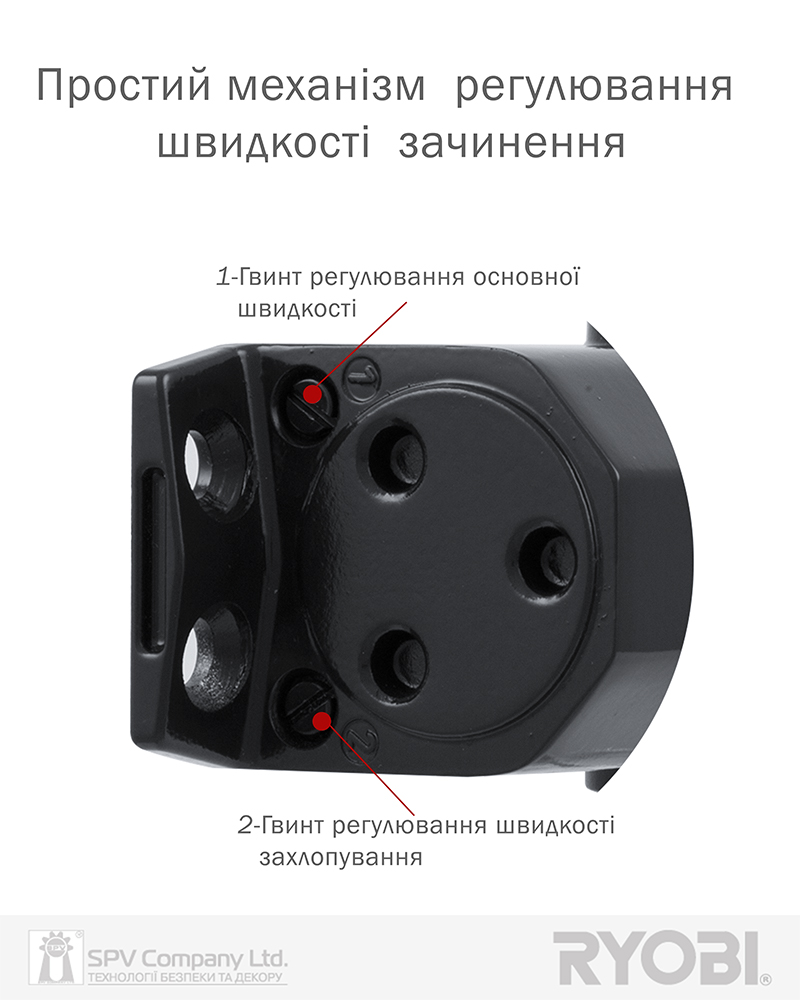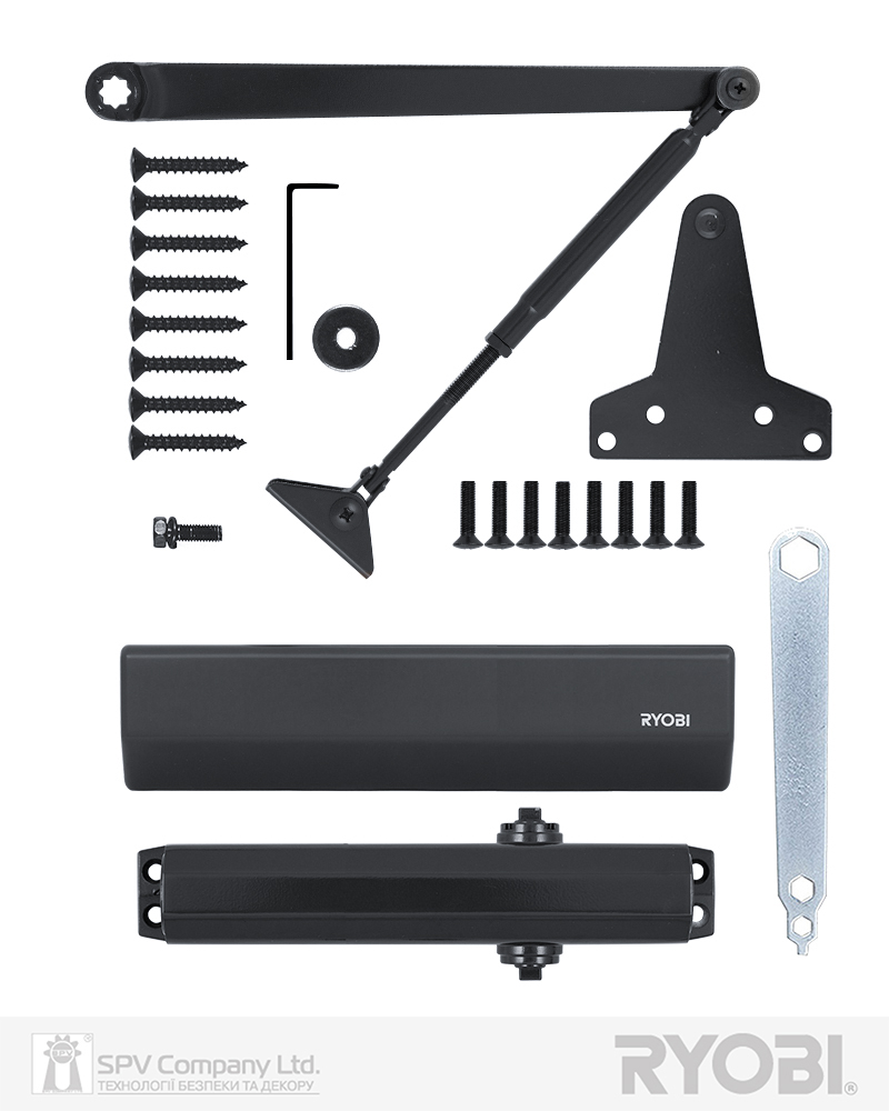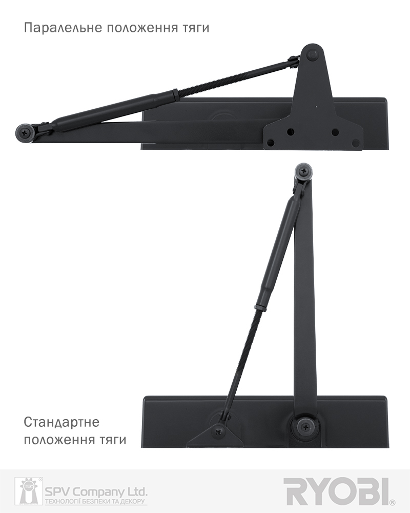 Дотягувач дверей RYOBI® серії 2000 модель D-2055 UNIV (Японія) накладного типу – призначений для керування зовнішніми та внутрішніми дверима.