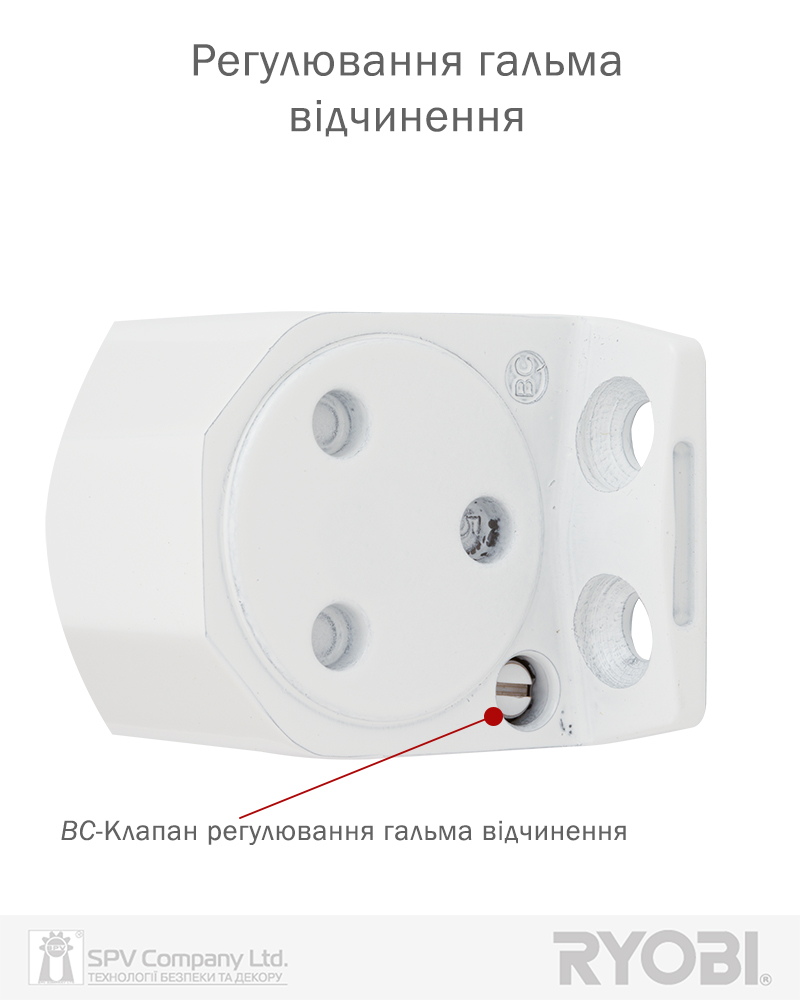 Дотягувач дверей RYOBI® серії 2000 модель D-2055 STD (Японія) накладного типу – призначений для керування зовнішніми та внутрішніми дверима.