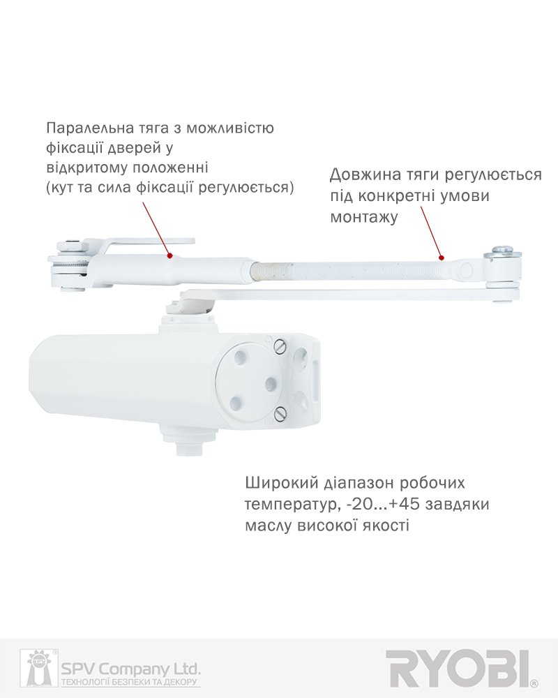 Дотягувач дверей RYOBI® серії 2000 модель DS2055P PRL_HO(Японія) накладного типу – призначений для керування зовнішніми та внутрішніми дверима.