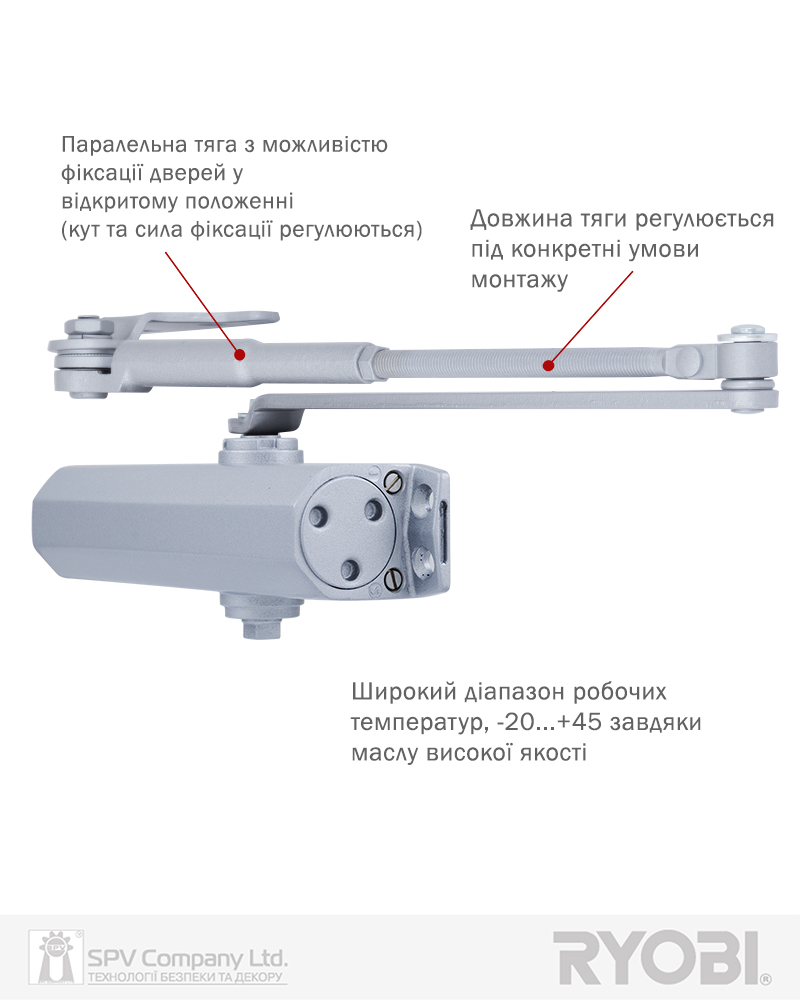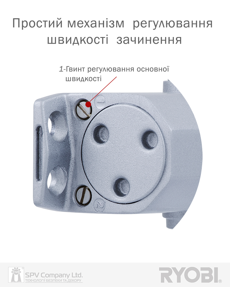 Дотягувач дверей RYOBI® серії 2000 модель DS2055P PRL_HO(Японія) накладного типу – призначений для керування зовнішніми та внутрішніми дверима.