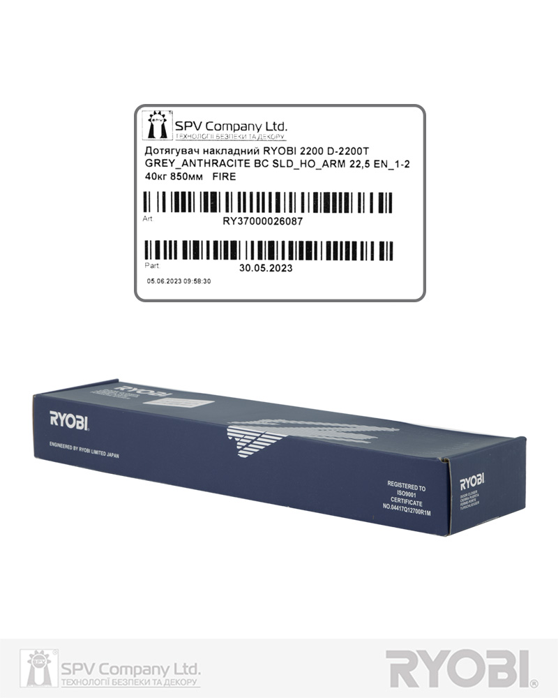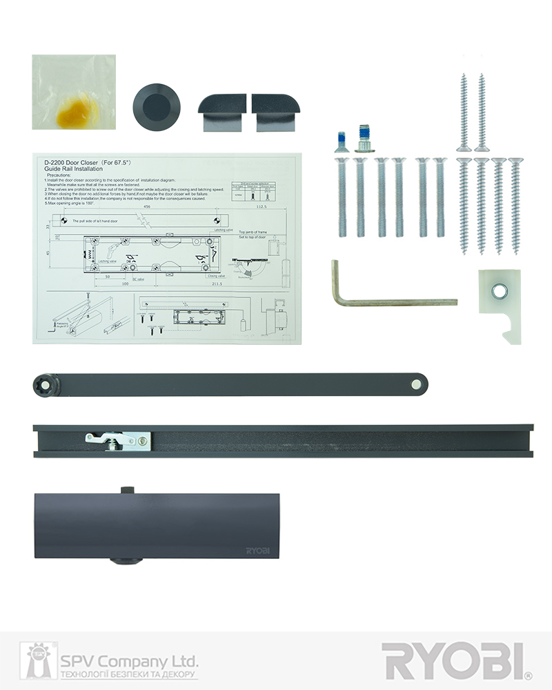 Дотягувач дверей RYOBI® серії 2200 модель D-2200T (Японія) накладного типу з ковзною тягою – призначений для керування внутрішніми та легкими зовнішніми дверима.