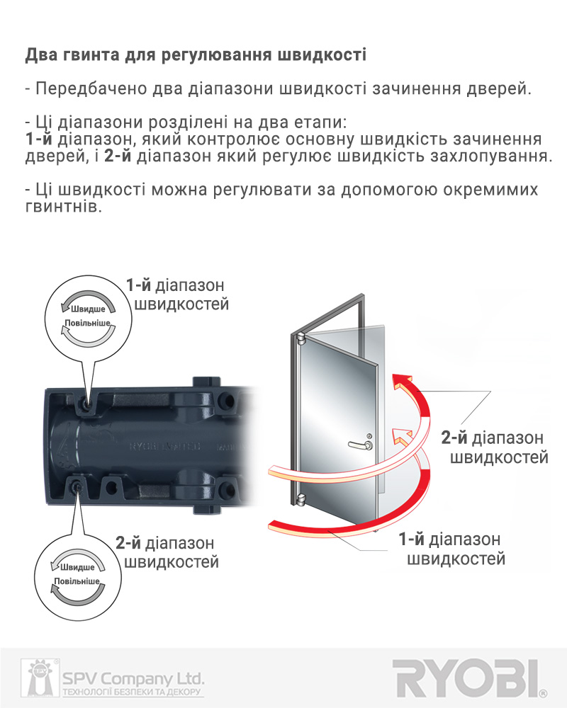 Регулювання початкової та кінцевої швидкостей зачинення.