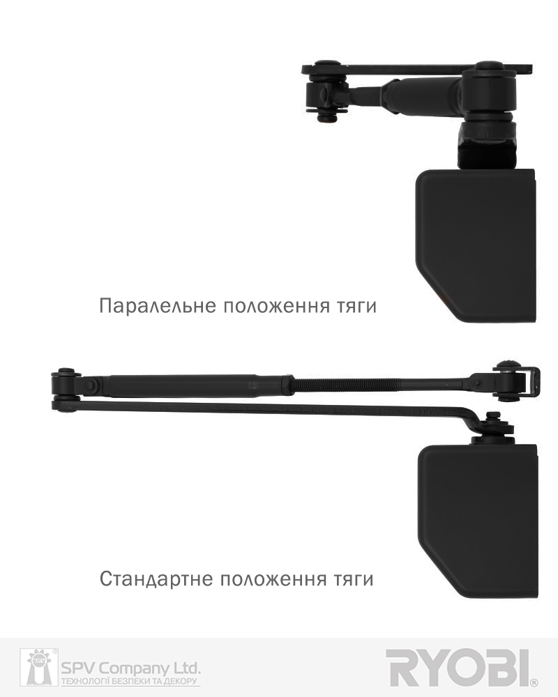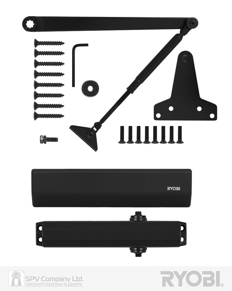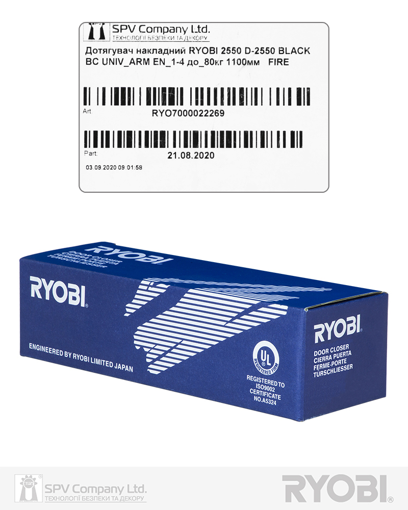 Дотягувач дверей RYOBI® серії 2500 модель D-2550 UNIV (Японія) накладного типу – призначений для керування зовнішніми та внутрішніми дверима.
