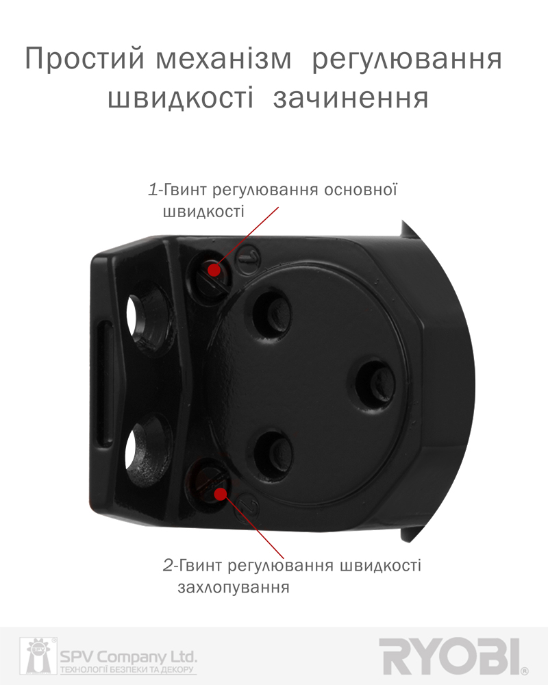 Регулювання початкової та кінцевої швидкостей зачинення.