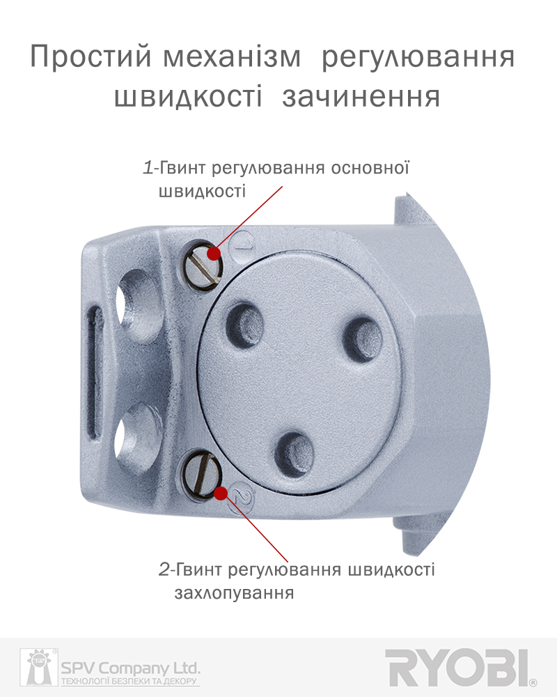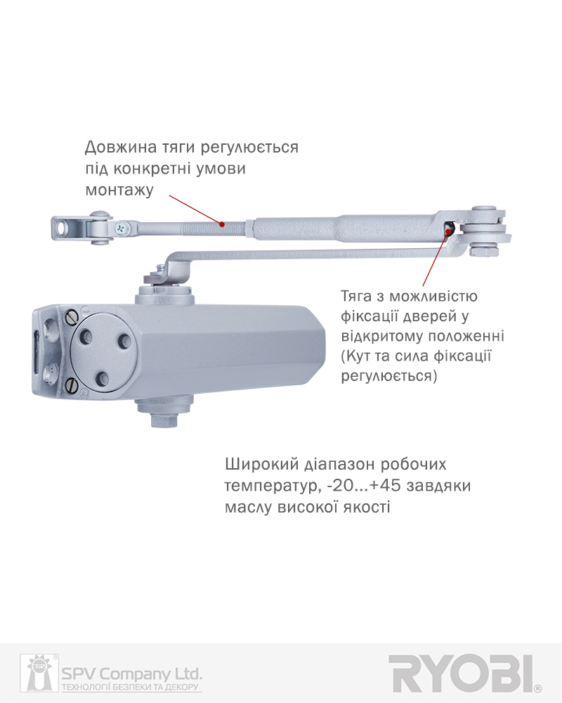 Дотягувач дверей RYOBI® серії 2500 модель DS-2550 STD_HO (Японія) накладного типу – призначений для керування зовнішніми та внутрішніми дверима.