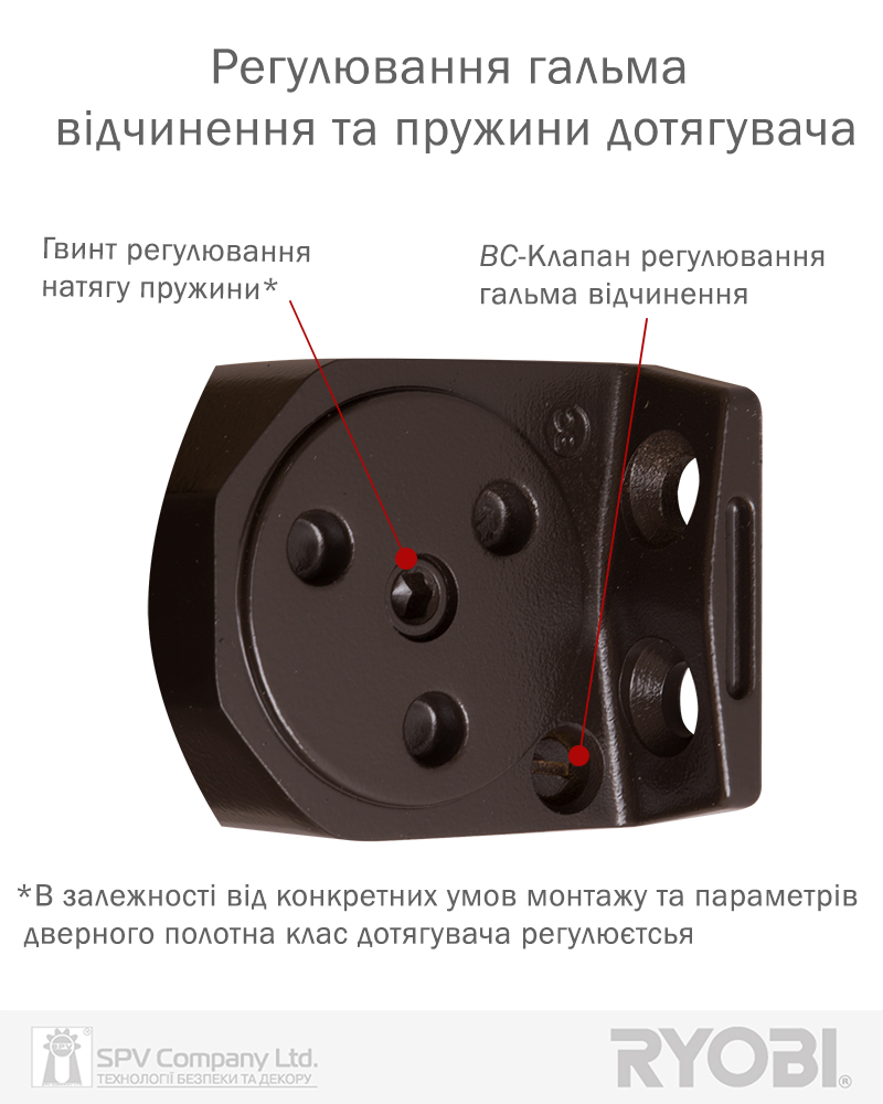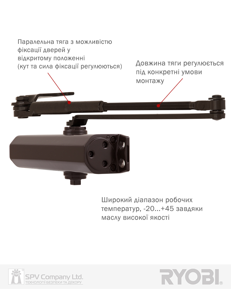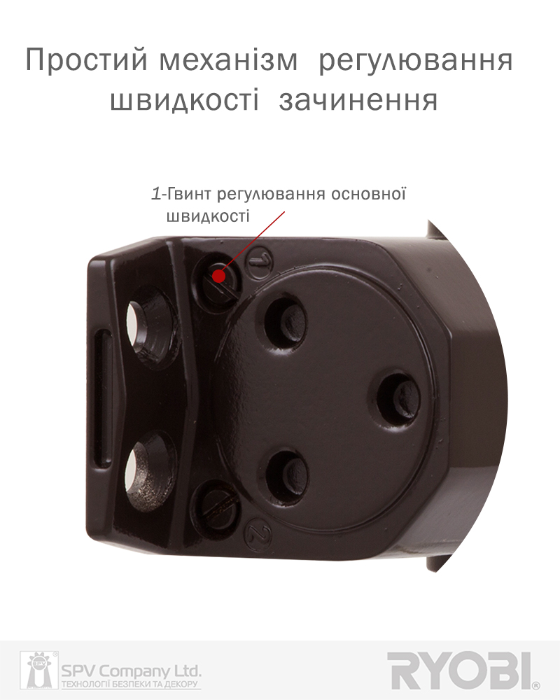 Дотягувач дверей RYOBI® серії 2500 модель DS-2550P PRL_HO (Японія) накладного типу – призначений для керування зовнішніми та внутрішніми дверима.