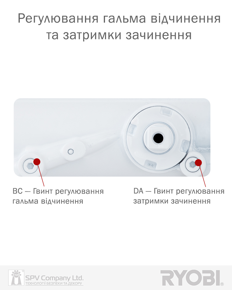 Регулювання початкової та кінцевої швидкостей зачинення.