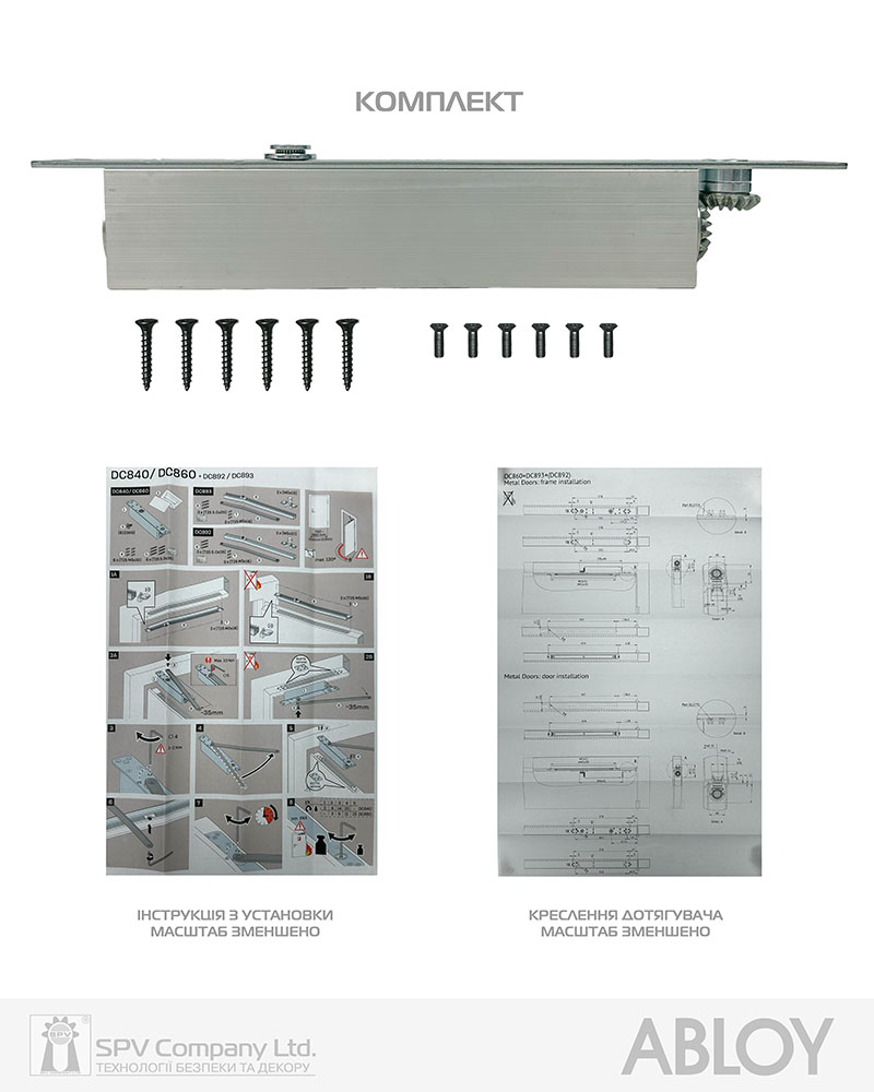 Комплектація: комплект кріплення, корпус дотягувача. Тяга замовляється окремо.