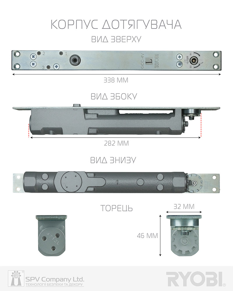 Дотягувач дверей RYOBI® серії GEOPRO модель GCС_4V_L (Японія) врізного типу – призначений для керування зовнішніми та внутрішніми дверима.