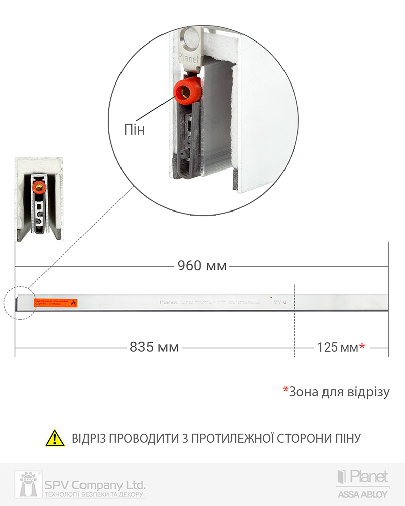 Довжина - 960 мм. Зменшення довжини в межах 125мм. Для дверних полотен шириною від 835 мм. до 960 мм.