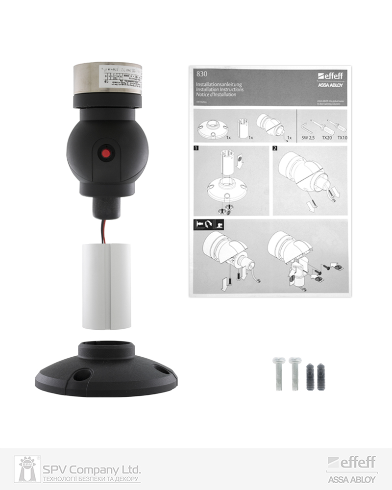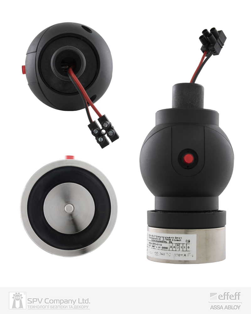 Електромагнітний утримувач дверей у відчиненому стані. Інтегрується до системи пожежної сигналізації та забезпечує вільне пересування в повсякденному режимі. У разі виникнення пожежі при спрацюванні пожежної сигналізації двері, які виконують функцію протипожежного бар’єру автоматично зачиняються для запобігання розповсюдження вогню та диму (двері повинні бути обладнані дотягувачем). Обладнаний кнопкою ручного розблокування (для тестування та зачинення дверей у повсякденному режимі в разі необхідності).