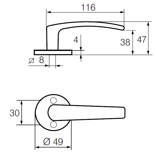 Фурнітура для внутрішнього застосування на роздільних щитках. Конструкція ручки та щитка має просту форму.