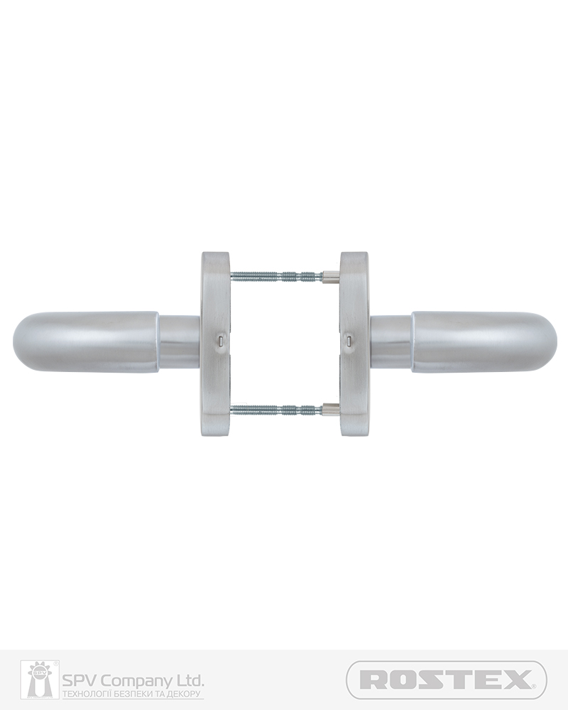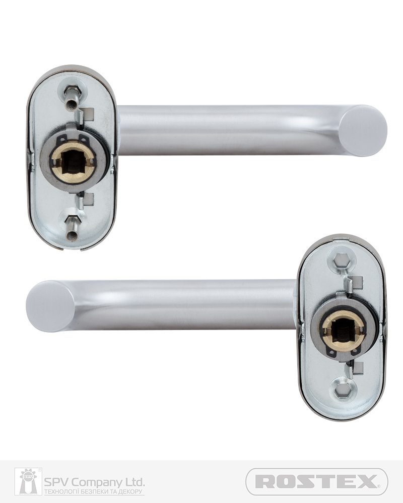 Підходить для дверей завтовшки 38-52 мм. Має якісну поворотну пружину, що розрахована на велике експлуатаційне навантаження. Європейський стандарт дверних ручок - EN 1906. В комплекті: шток – 8х8 мм, саморізи для кріплення безпосередньо до полотна дверей та болти М4 для наскрізного кріплення з заглушками. Болти можна вкорочувати в залежності від товщини дверей. Відстань між болтами 50 мм. Такий набір дозволяє кріпити ручку, як до полотна дверей, так і наскрізними гвинтами (якщо у замку є отвори), в залежності від вашого вибору. Кріплення з нержавіючої сталі. Пластикові вставки використовують, якщо ручка монтується наскрізними гвинтами. Вони виконують роль прихованого спейсера і запобігають тертю щитка ручки по полотну дверей. В комплекті дві пластикові вставки: номер «5» для зовнішньої сторони та номер «4» для внутрішньої.