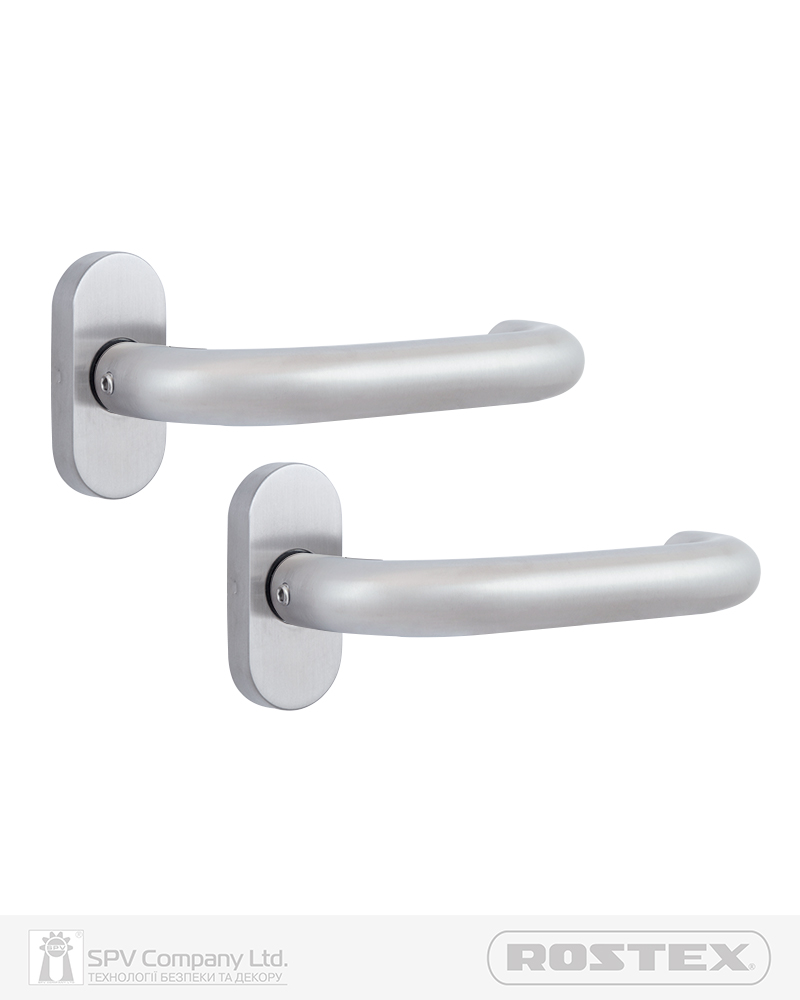 Дизайн ручки пасуватиме інтер’єрам громадського призначення. Матова поверхня та закруглена форма приємні для користування. Фурнітура має щиток овальної форми.Обробка матова нержавіюча сталь, має холодний сталевий відтінок із матовою поверхнею, що царапана щіткою.