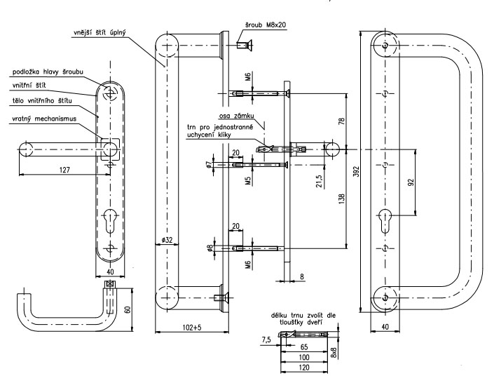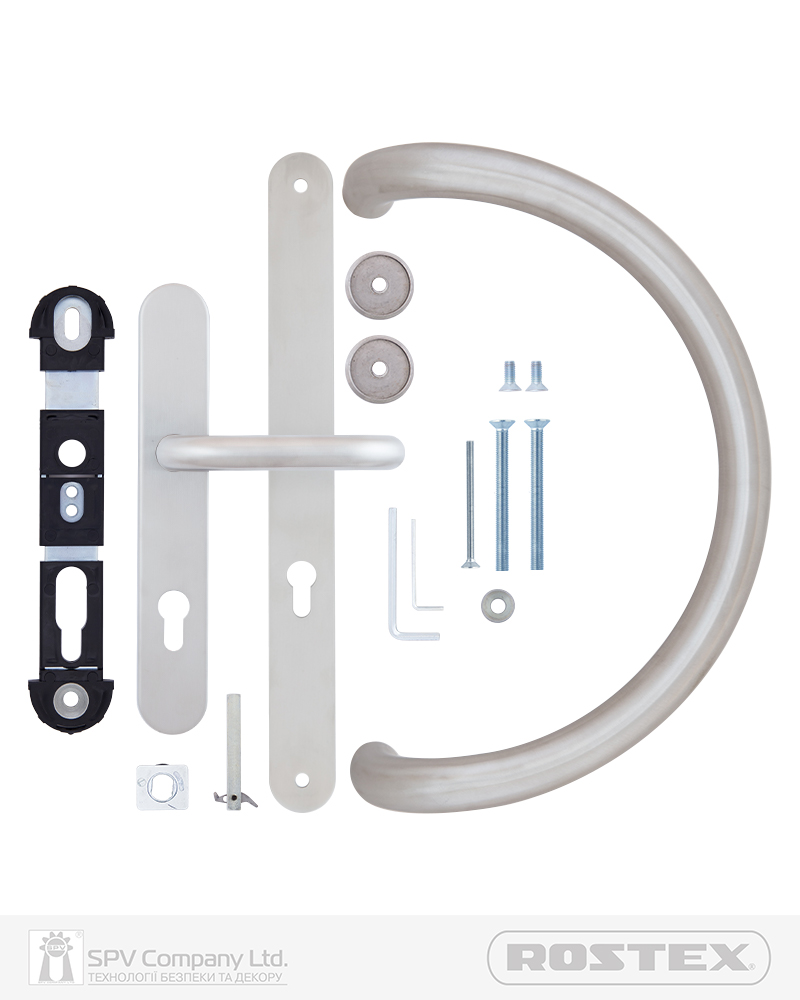 Встановлюється на двері товщиною 65-80мм. Установка на двері за допомогою гвинтів M8x50 мм у будь-якому місці дверей. Монтаж на двері можливий у вертикальному, горизонтальному або діагональному положенні. На двері із замками із звичайною заскочкою необхідно підібрати поворотну ручку-половинку для монтажу із внутрішнього боку дверей з метою забезпечення вільного виходу. Для дверей із роликовою заскочкою можна придбати двосторонню ручку скобу. Для захисту замкового циліндру рекомендуємо застосовувати протектор ROSTEX QUADRUM або ROSTEX ROTONDUM з обробкою нержавіюча сталь матова.