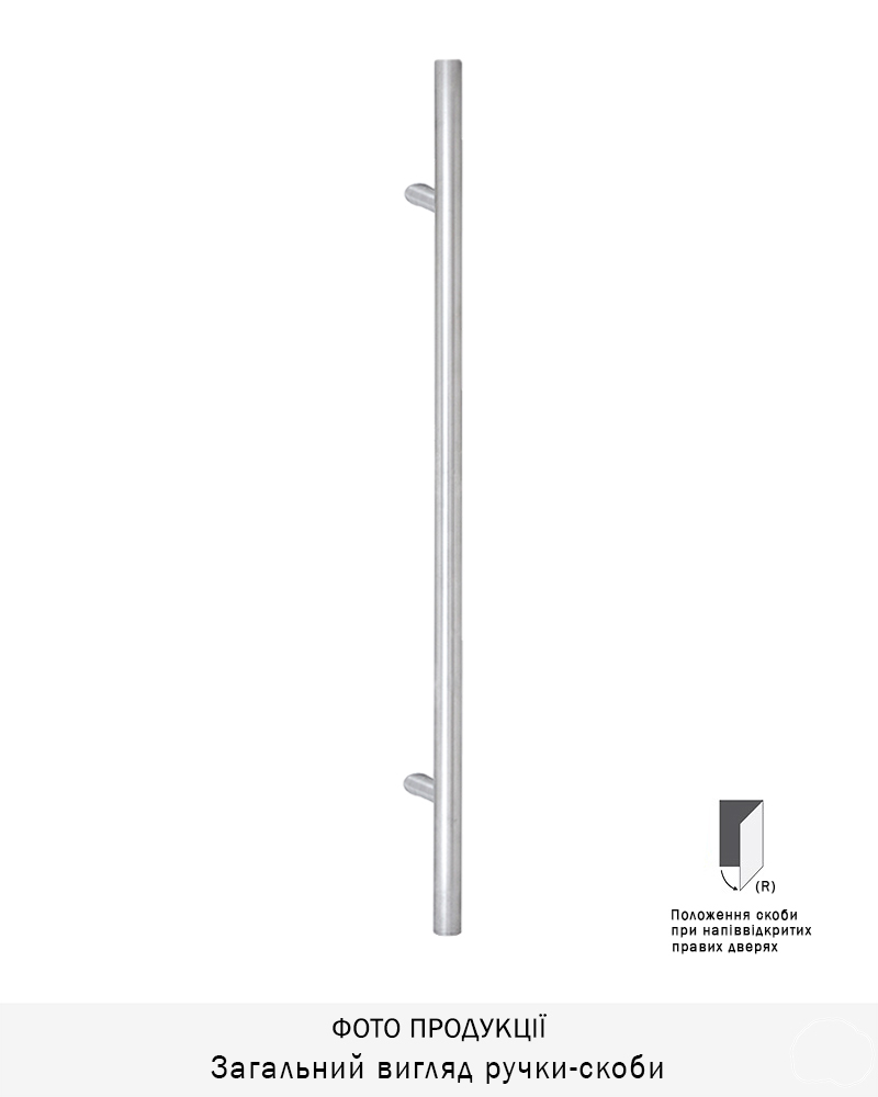 Ручка-скоба виготовлена з нержавіючої сталі з обробкою нержавіюча сталь матова, призначена для використання у зовнішньому та внутрішньому середовищі.