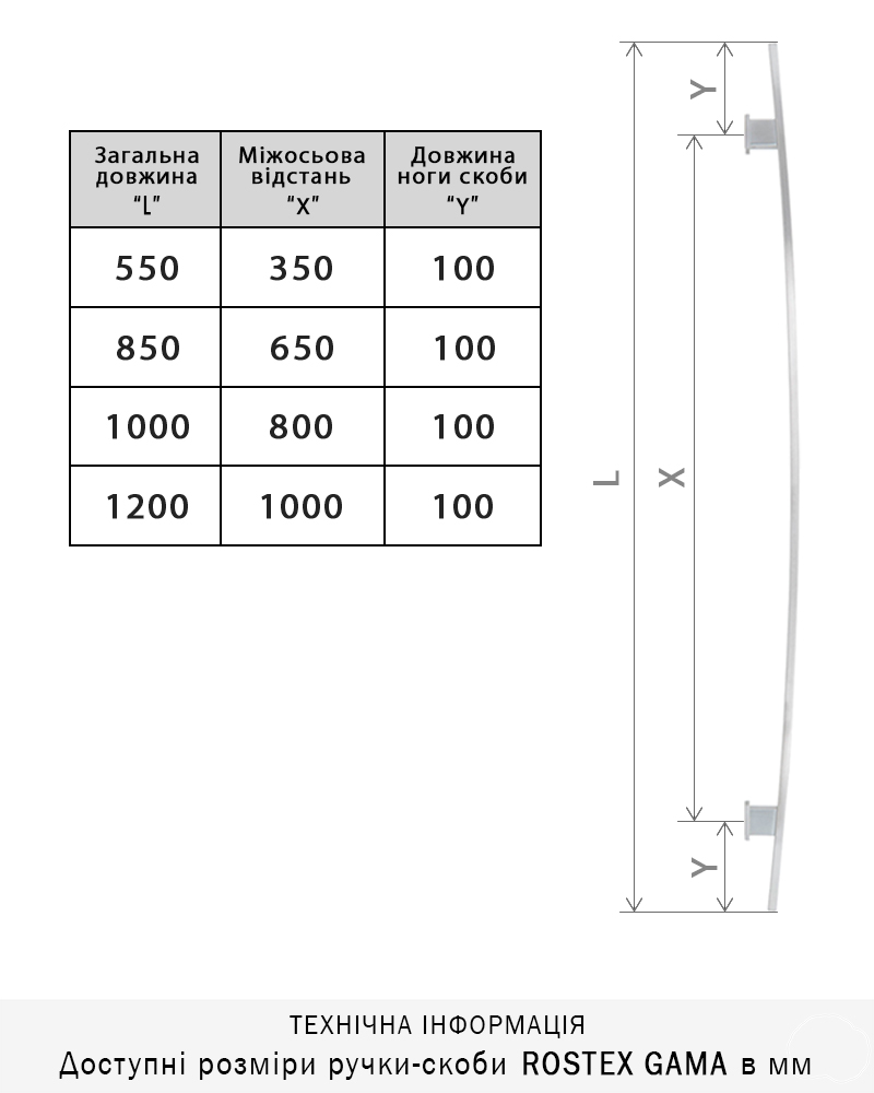 В нашому асортименті є різні довжини ручок-скоб, доступні розміри для моделі ROSTEX GAMA: 550, 850, 1000, 1200мм.