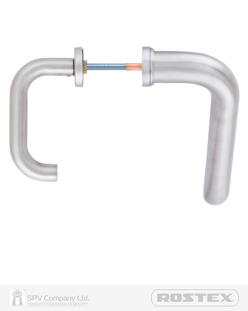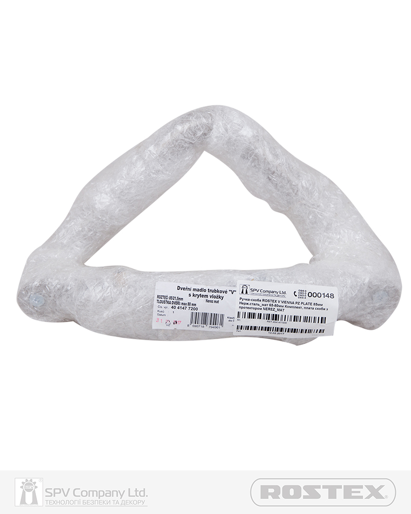 Комплект ROSTEX ручки-скоби VIENNA та фурнітури на суцільній планці з натискною ручкою. Встановлюється на двері товщиною 65-80мм. Установка на двері за допомогою наскрізного кріплення, гвинтами M6x75 мм. Комплект розрахований на замки зі звичайним (фалевим) ригелем, монтаж на двері можливий у вертикальному положенні.