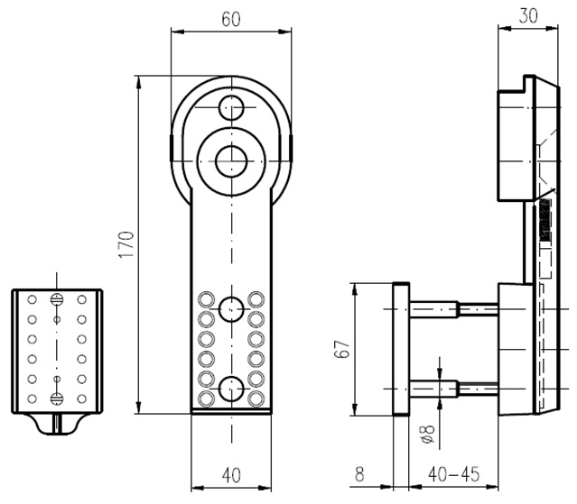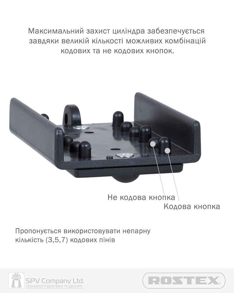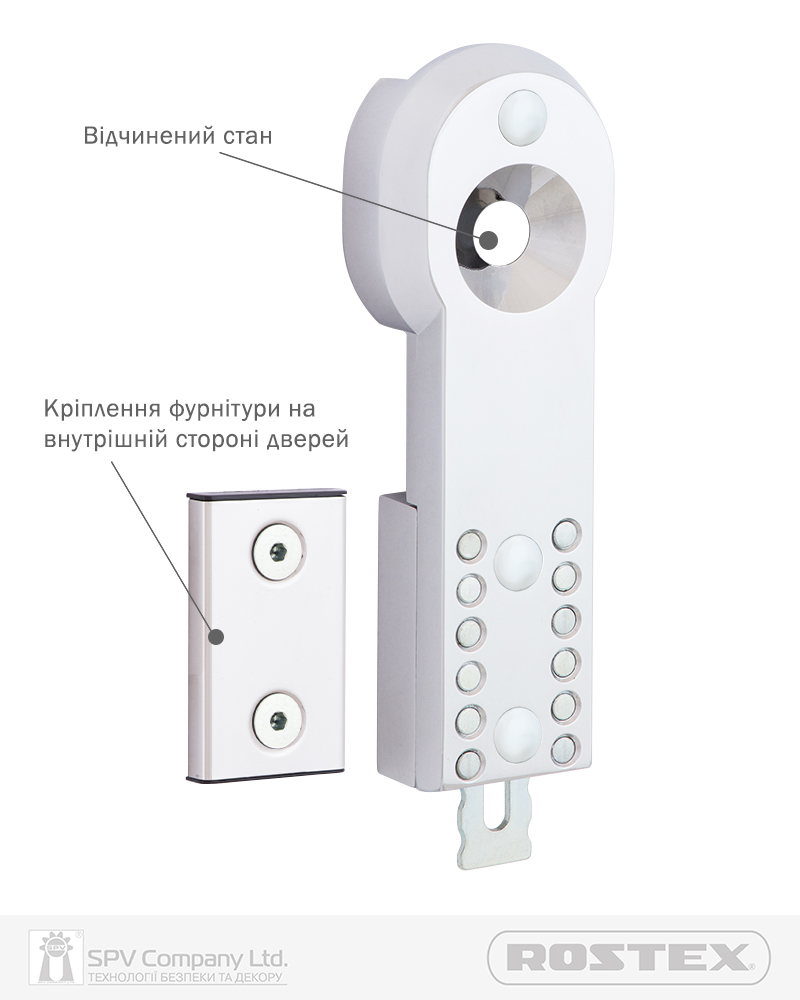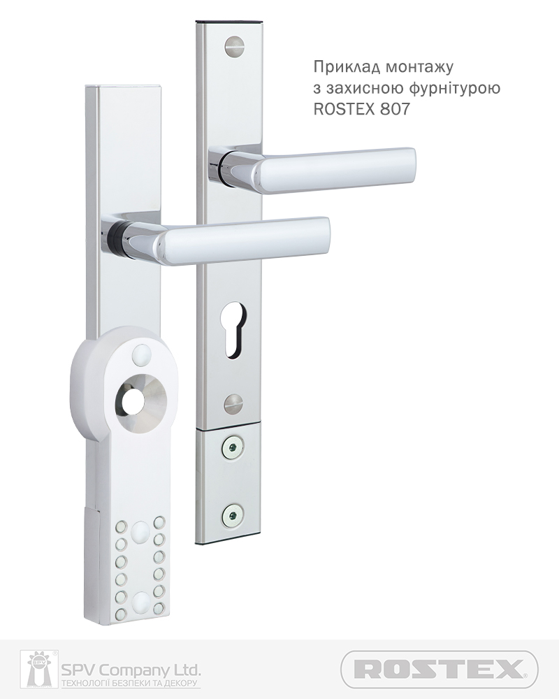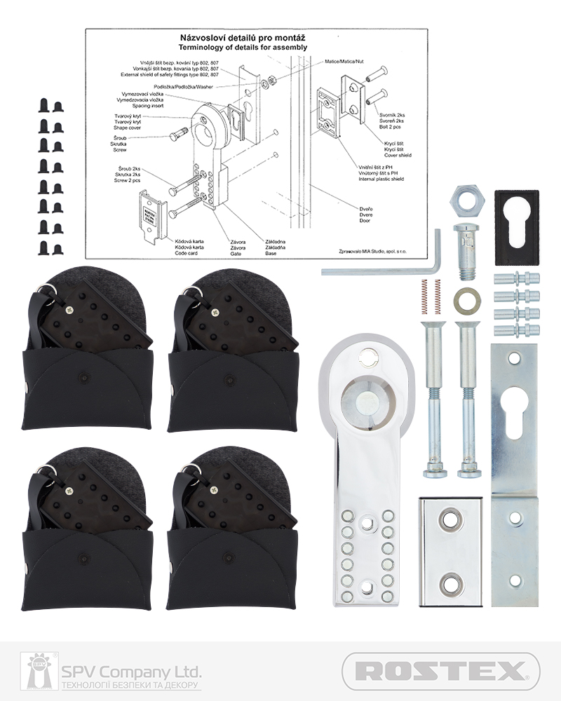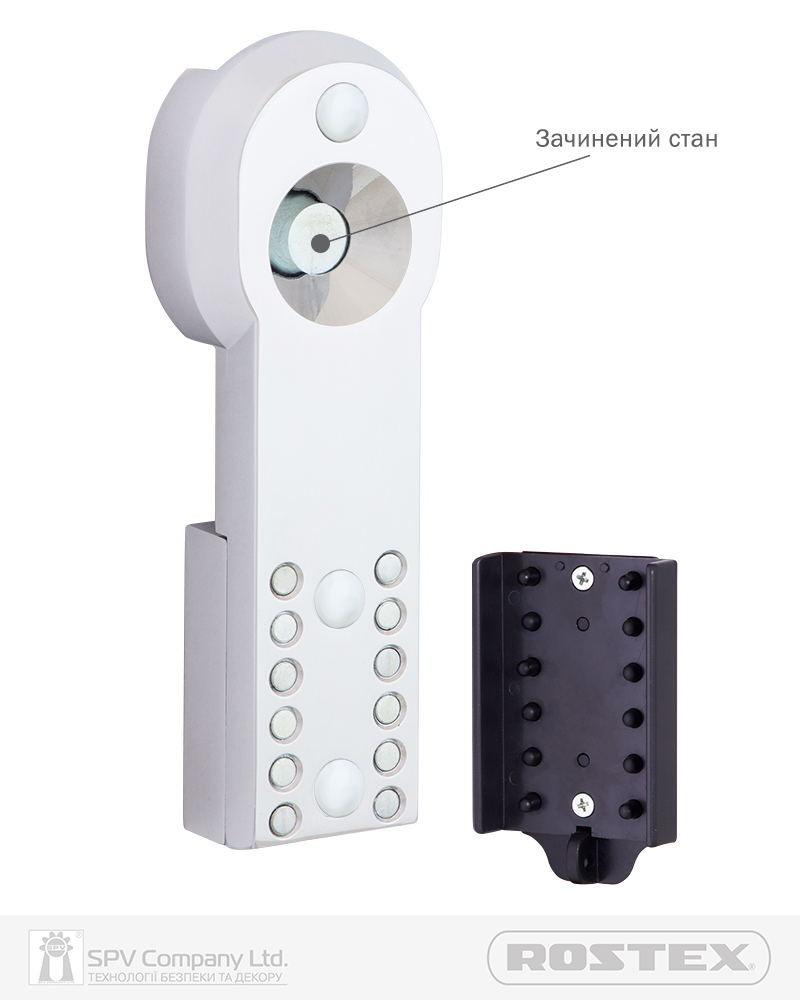 Додотковий захисний пристрій до фурнітури ROSTEХ 802/807 з міжосьовою відстанню 90мм. Виключає несанкціонований доступ до циліндра. Забезпечує додатковий захист від вандалізму та зламу циліндра. У комплекті чотири ключа-картки, набір складових для перекодування.