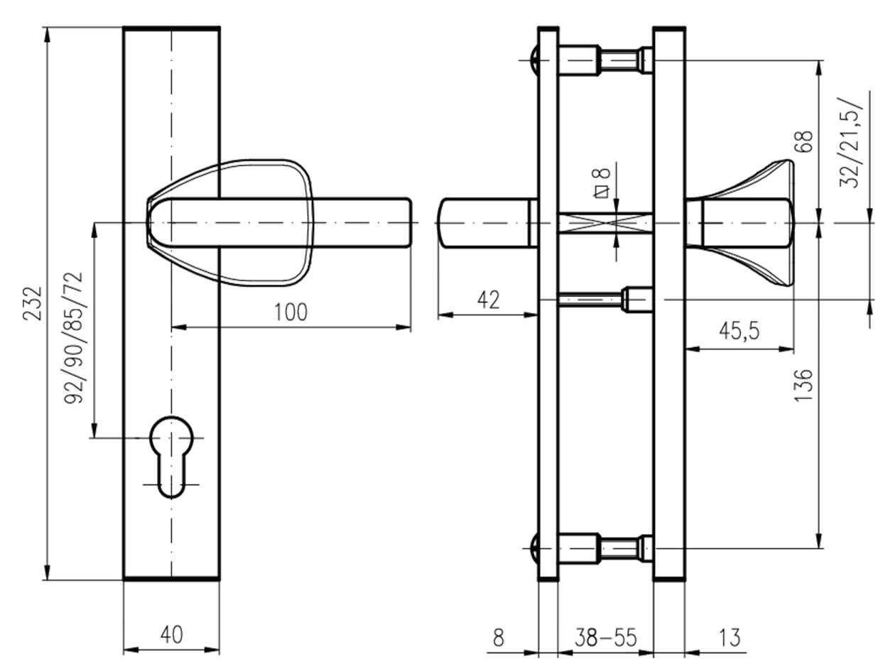 Фурнітура захисна ROSTEX 807 до основних замків для вхідних металевих, деревяних та профільних дверей товщиною 38-55мм з можливістю подовження до 100мм (комплекти подовження замовляються окремо).