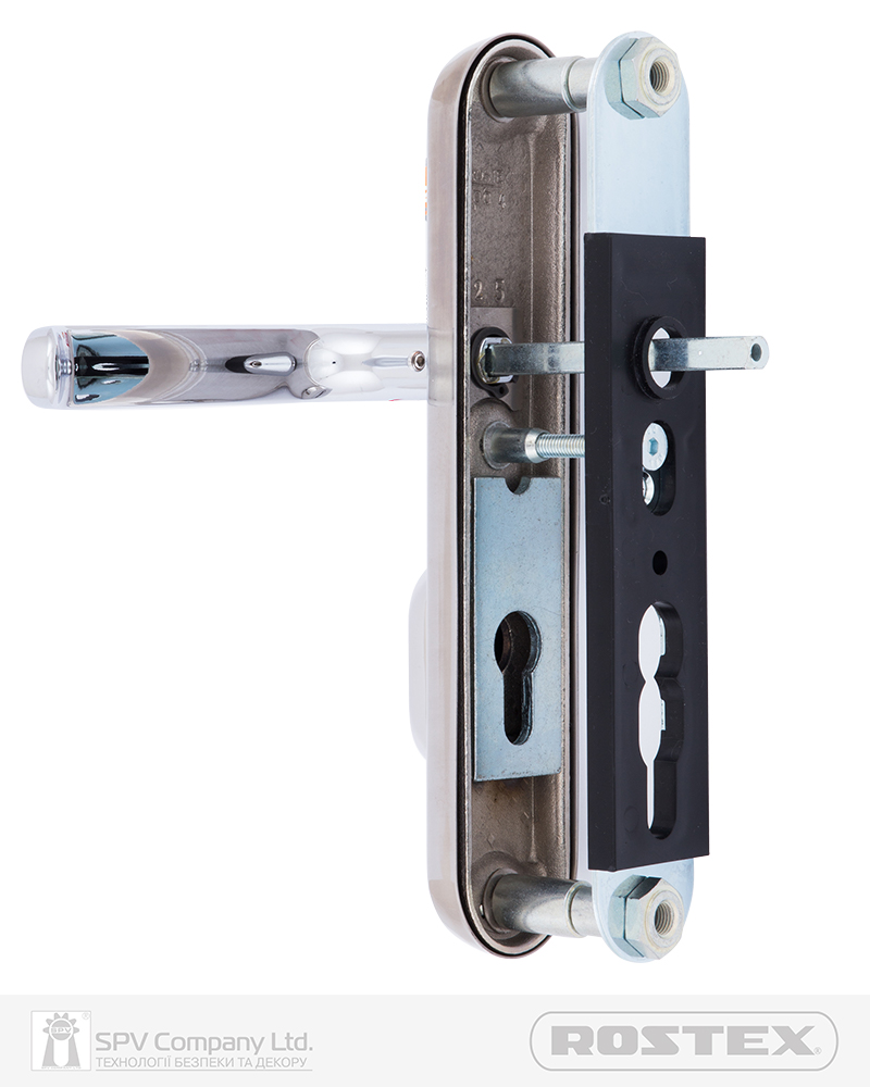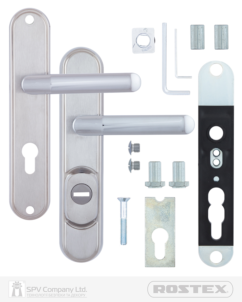 Фурнітура захисна ROSTEX R4 DECOR до основних замків для вхідних металевих та деревяних дверей товщиною 38-45мм з можливістю подовження до 100мм (комплекти подовження замовляються окремо). 4-й клас безпеки. Матеріал: нержавіюча сталь, замак. Плата, що захищає корпус замка. Загартований протектор циліндра із захистом від висвердлювання. Кріплення - болти М8. Додатковий болт кріплення М6.