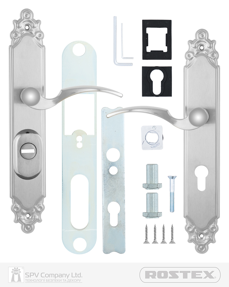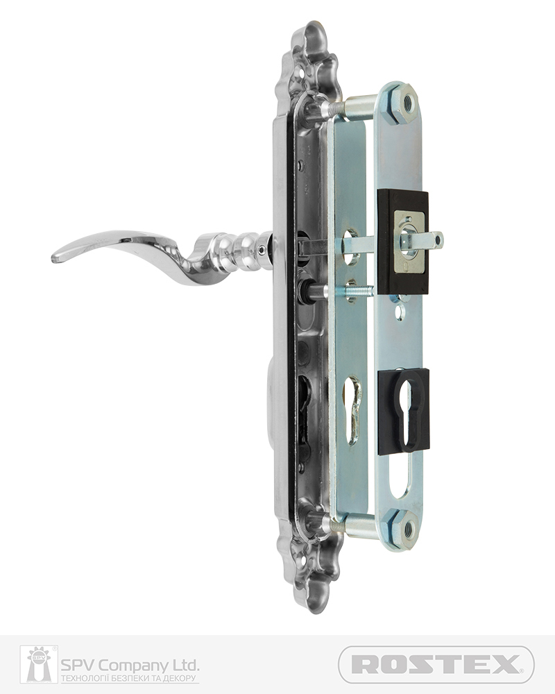 "Фурнітура захисна ROSTEX R4 OZDOBNA до основних замків для вхідних металевих та деревяних дверей товщиною 38-45мм з можливістю подовження до 100мм (комплекти подовження замовляються окремо).