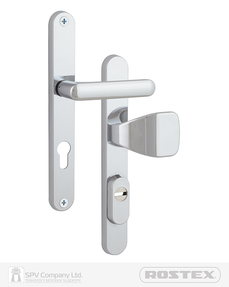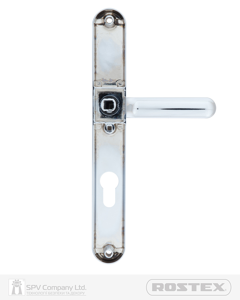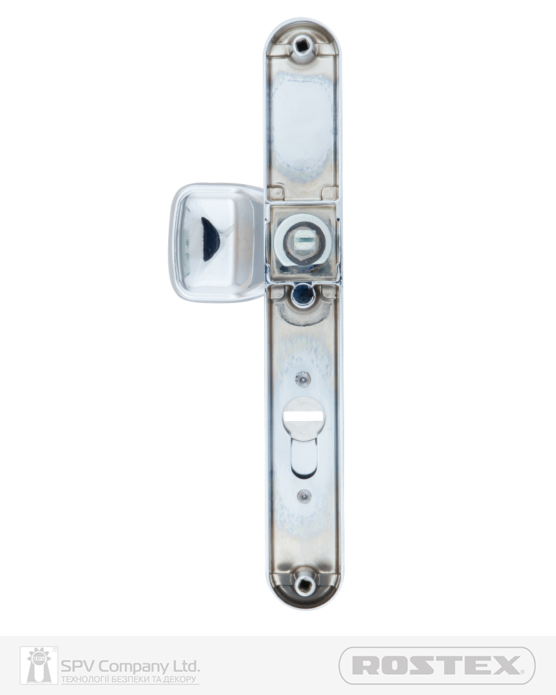 Фурнітура захисна ROSTEX FOR PLASTIC DOORS до основних замків для вхідних металевих, деревяних та профільних дверей товщиною 40-45мм з можливістю подовження до 100мм (комплекти подовження замовляються окремо). Матеріал: нержавіюча сталь, замак. Плата, що захищає корпус замка. Загартований протектор циліндра із захистом від висвердлювання. Кріплення - болти М8.
