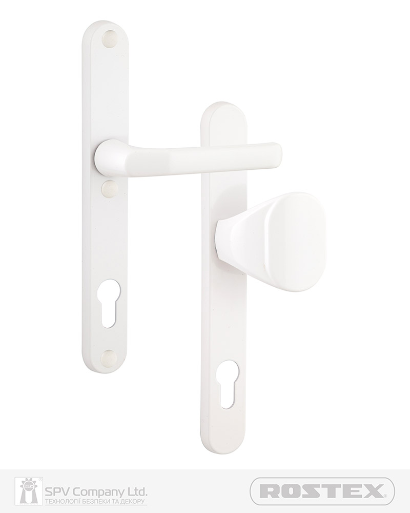 Фурнітура захисна для внутрішнього та зовнішнього застосування. Орієнтована для профільних дверей. Фурнітура для пластикових дверей на суцільному щитку.