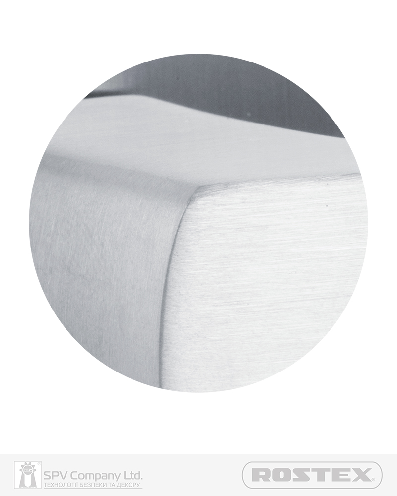 Обробка нержавіюча сталь матова. Має холодний сталевий відтінок із матовою поверхнею, що царапана щіткою. Найкраще підходить для застосування у сучасних інтер’єрах.