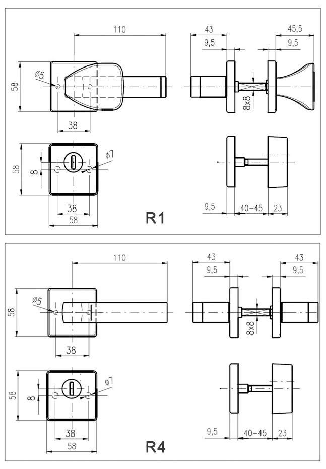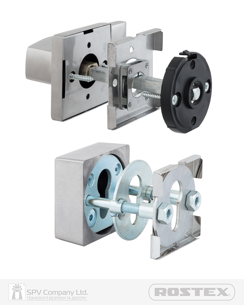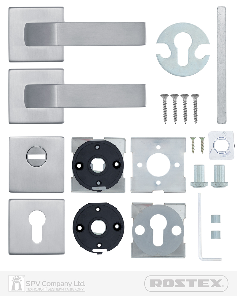Фурнітура захисна ROSTEX R4/H QUADRUM до основних замків для вхідних металевих та деревяних дверей товщиною 38-45мм з можливістю подовження до 100мм (комплекти подовження замовляються окремо). З-й клас безпеки. Матеріал: нержавіюча сталь. Загартований протектор циліндра із захистом від висвердлювання. Кріплення - болти М7.