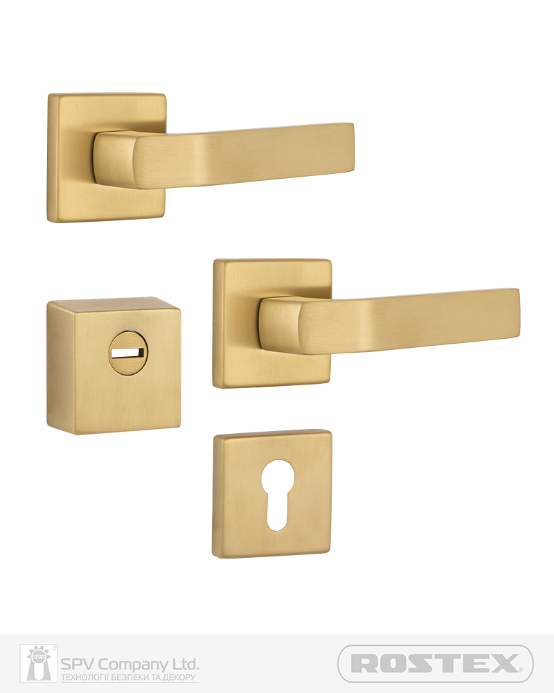 Обробка нержавіюча сталь матова титан PVD, має спокійний жовтий колір матову поверхню, яка оброблена щіткою. Найкраще виглядає на темних дверях, підходить до інтер’єрів у класичному та сучасному стилях.